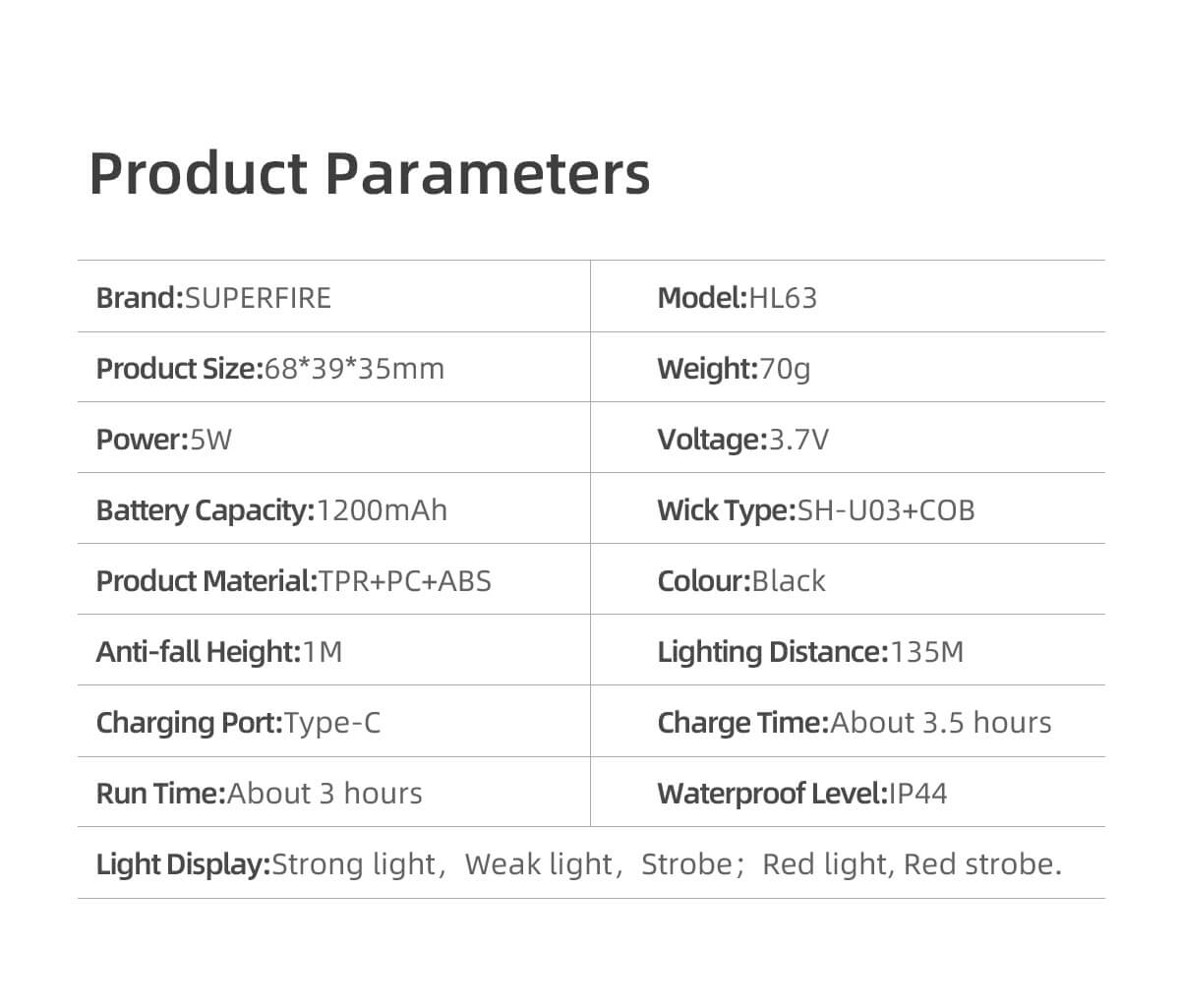 Home  > Products  > Headlamps  > USB Rechargeable Headlamp  > SUPERFIRE HL63 Rechargeable Headlamp