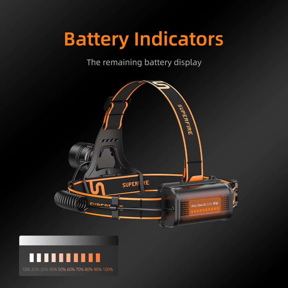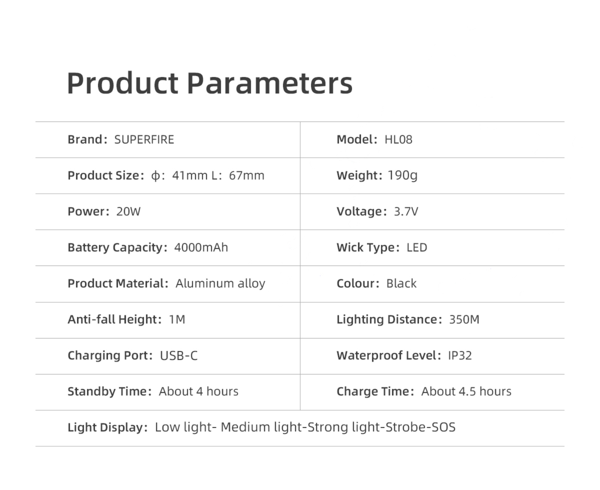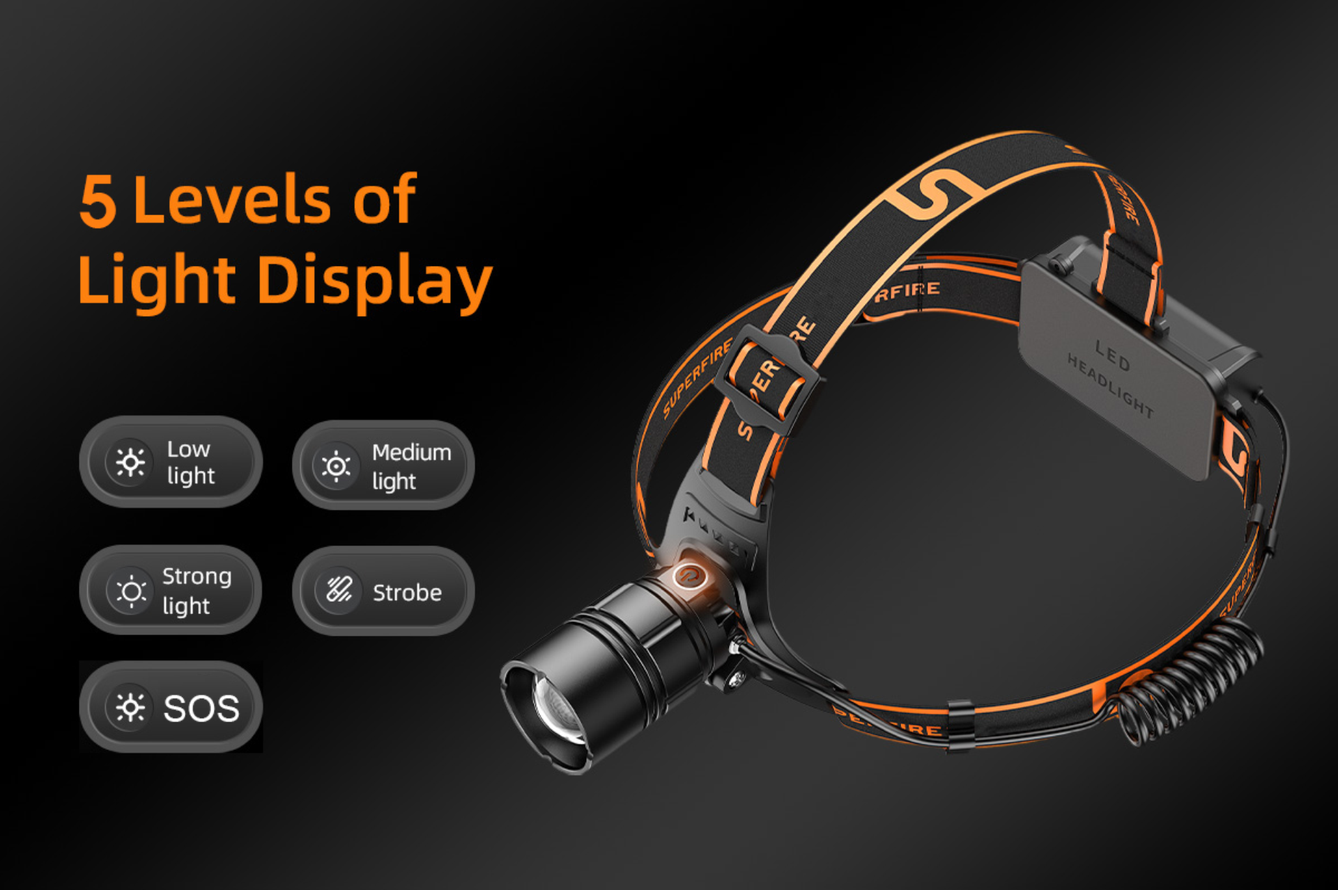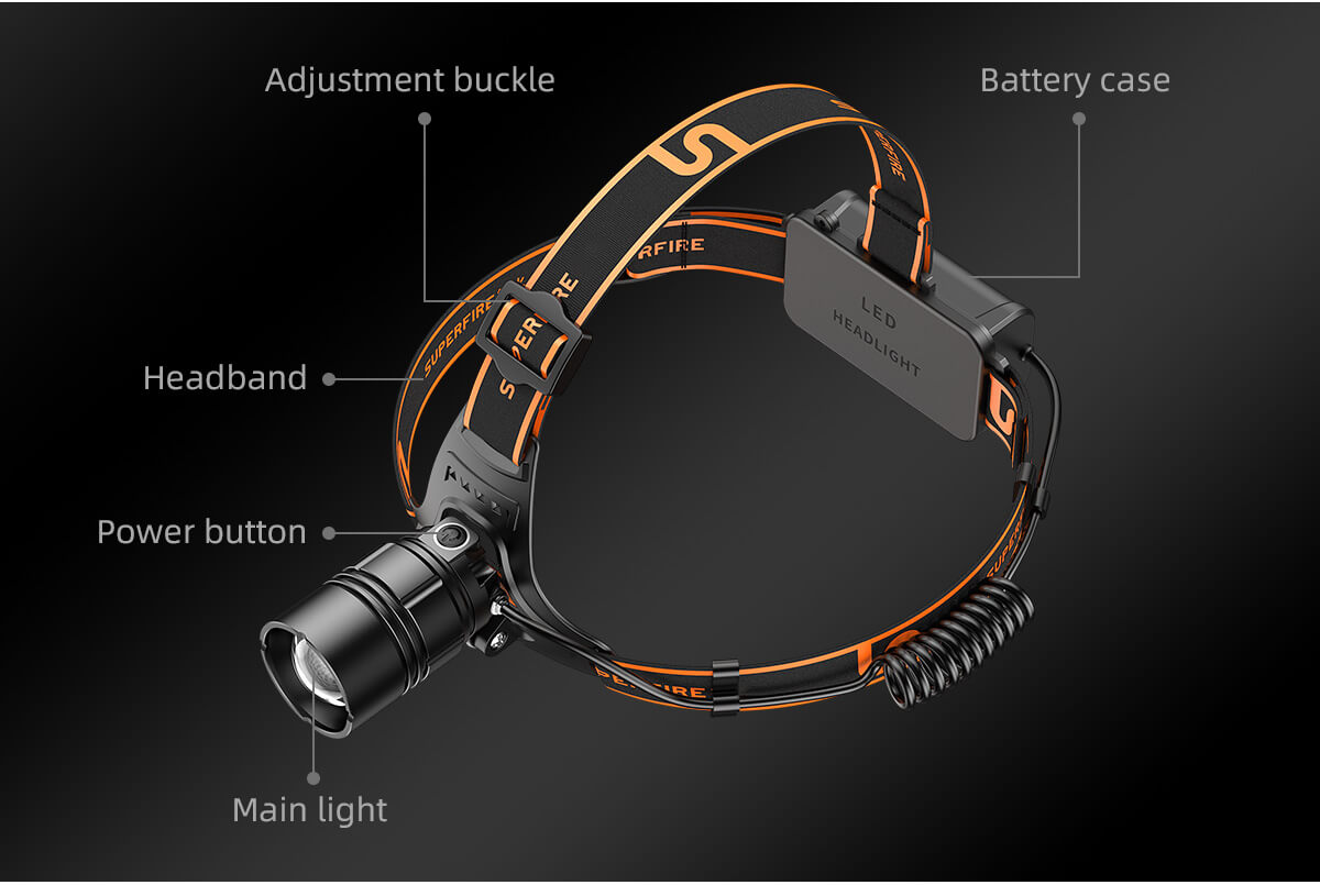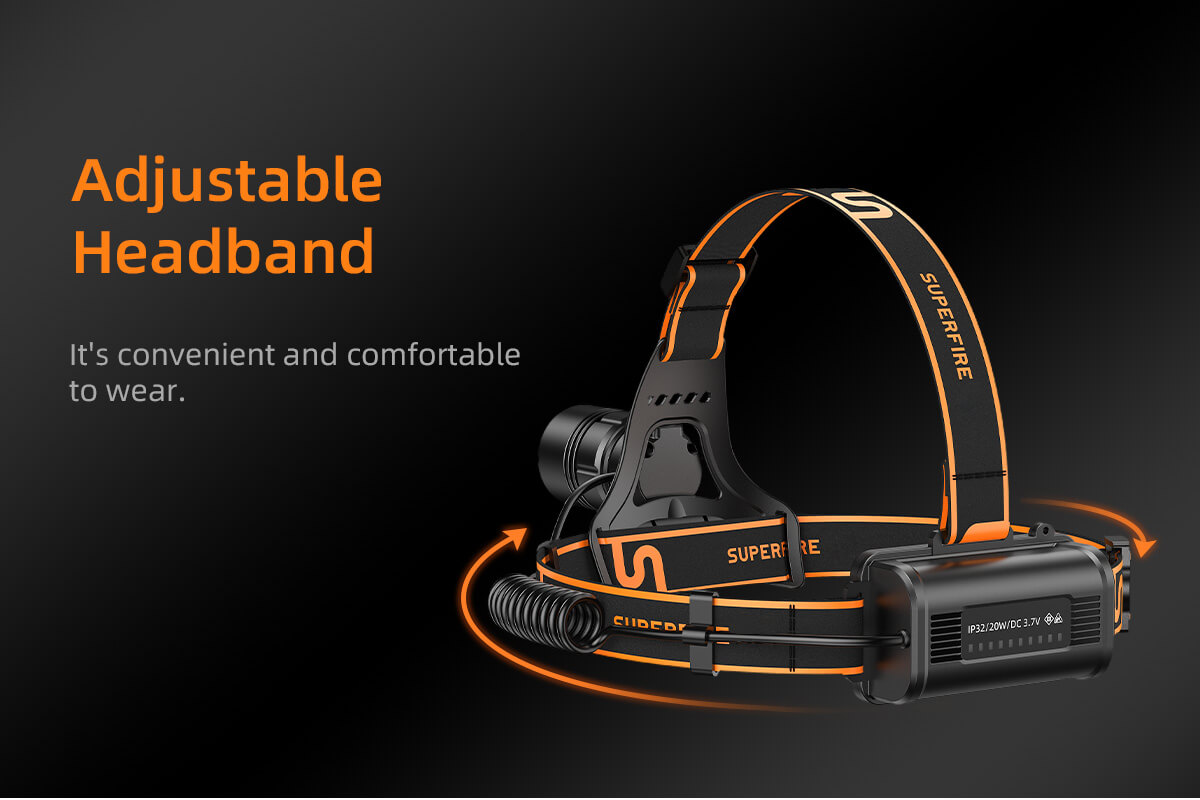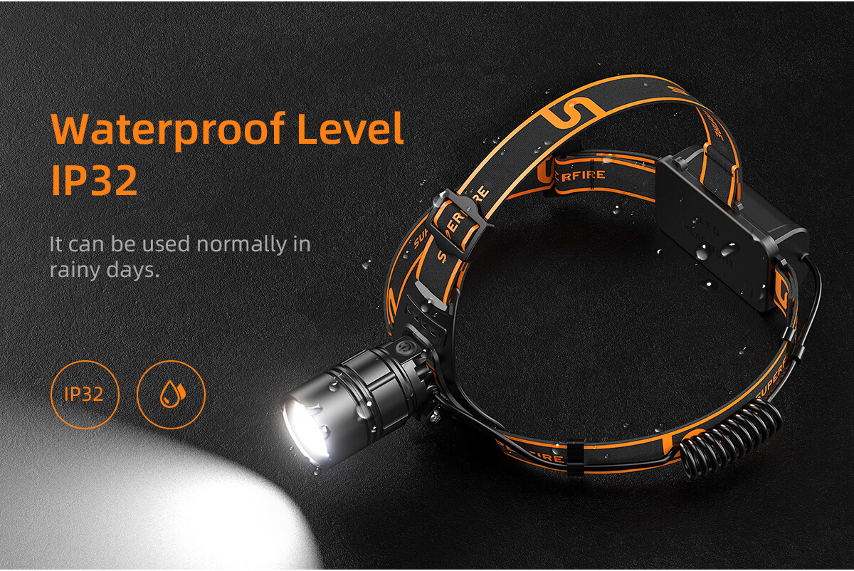 The SUPERFIRE HL08 is a high-performance rechargeable headlamp designed for both outdoor enthusiasts and professionals. With a maximum output of 1900 lumens and a beam distance of up to 350 meters, this powerful headlamp provides exceptional illumination for various activities. The HL08 features adjustable focus, a 90° tilt mechanism, and multiple lighting modes, making it versatile for any situation.