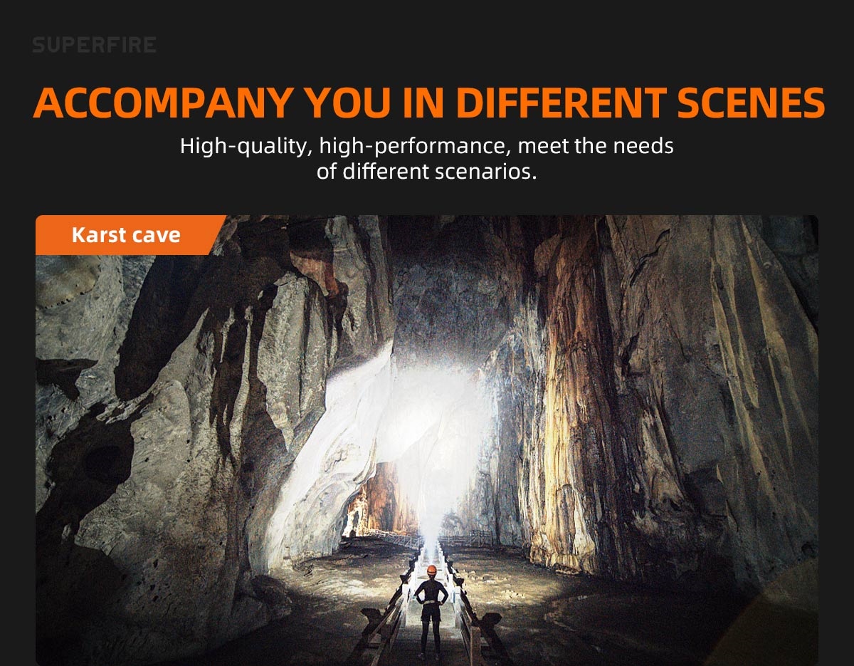3.Accompany you in different scenes:karst cave,hiking in the forest,sea fishing,outdoor adventure,search and rescue