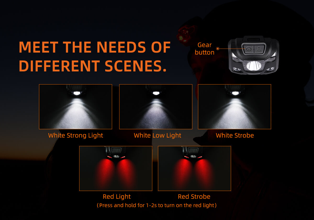 Lighting mode white strong-white low-white strobe-red-red srtobe