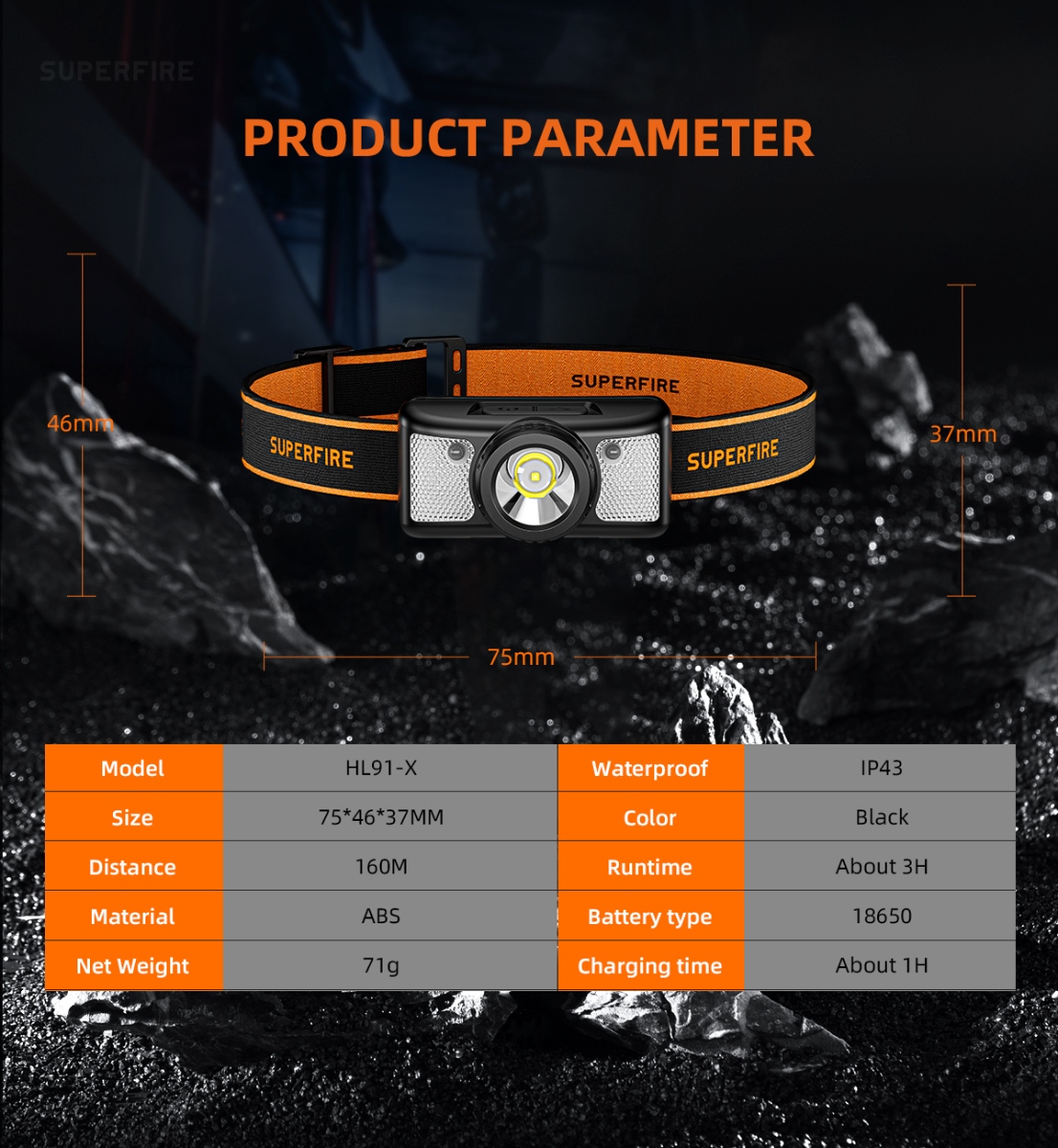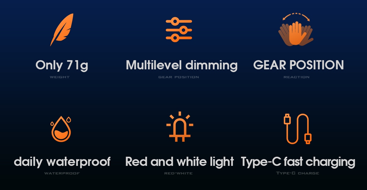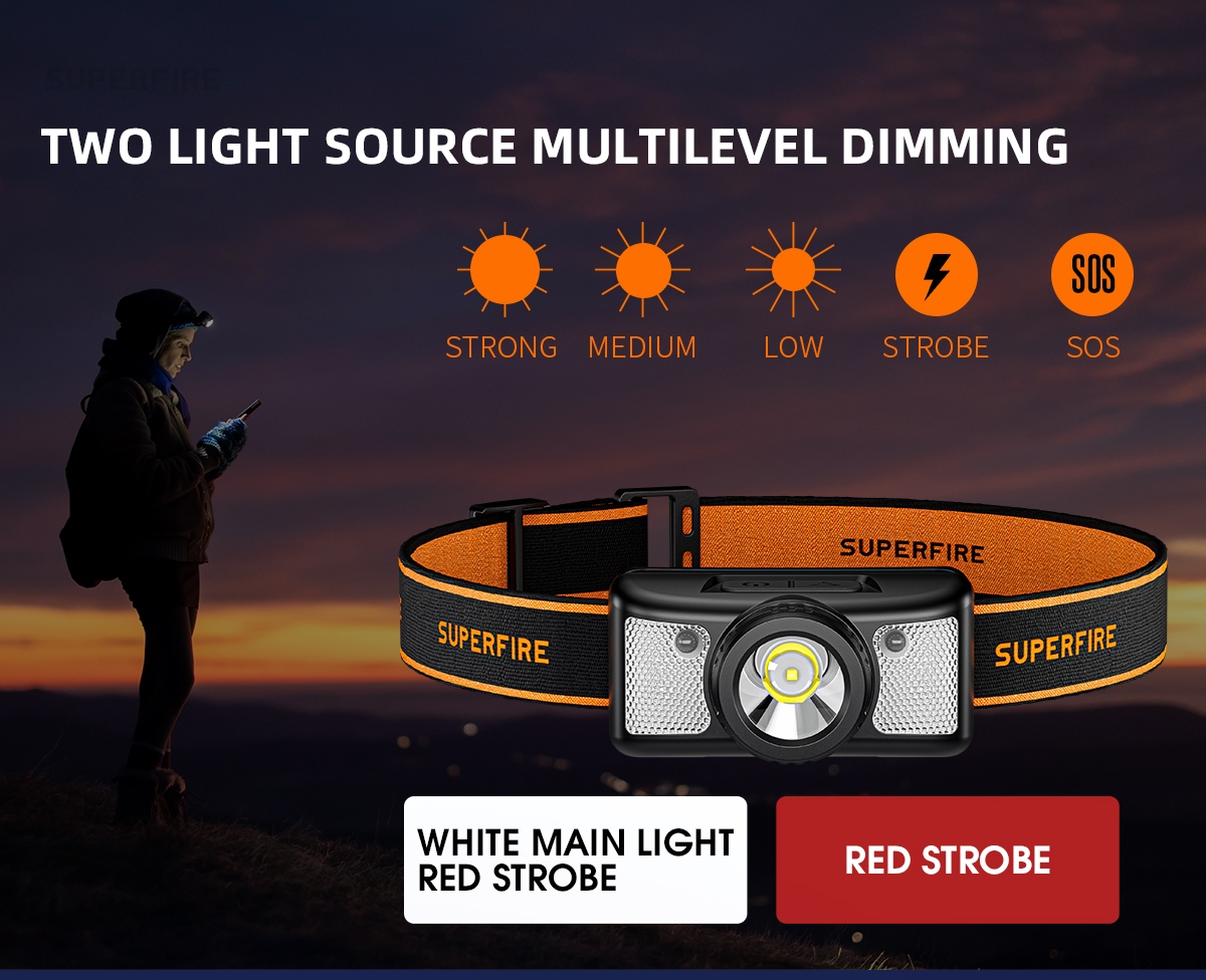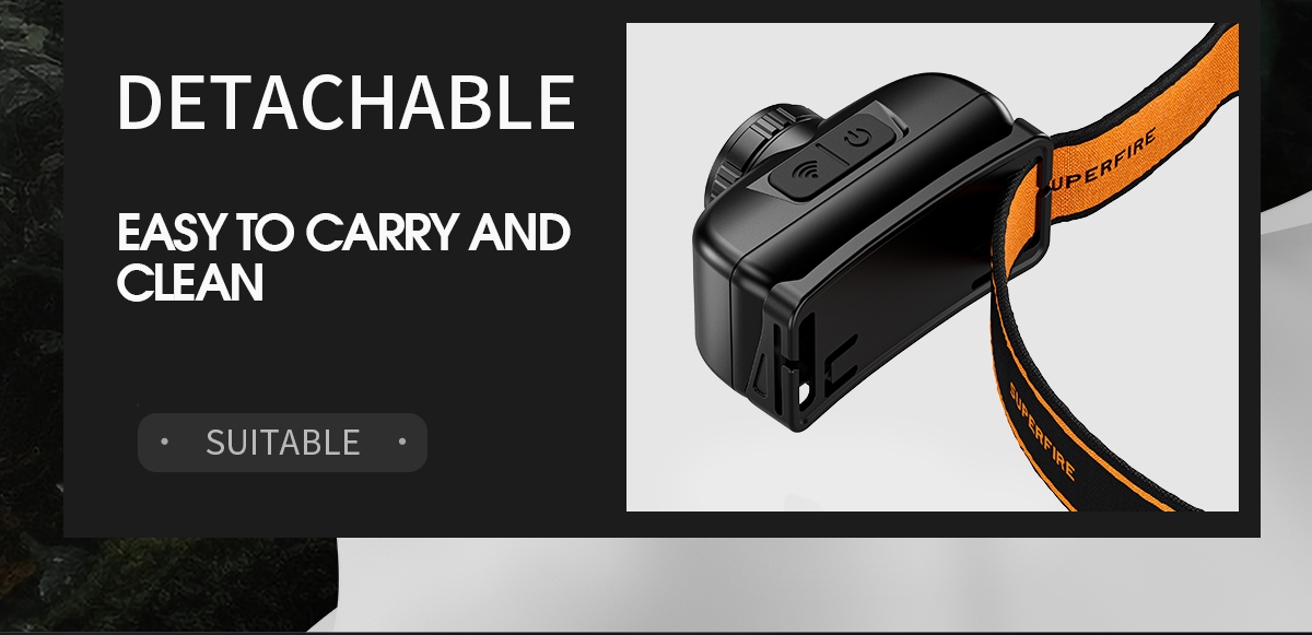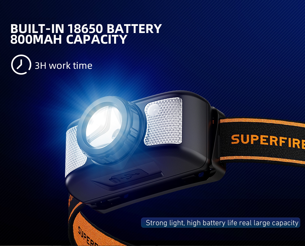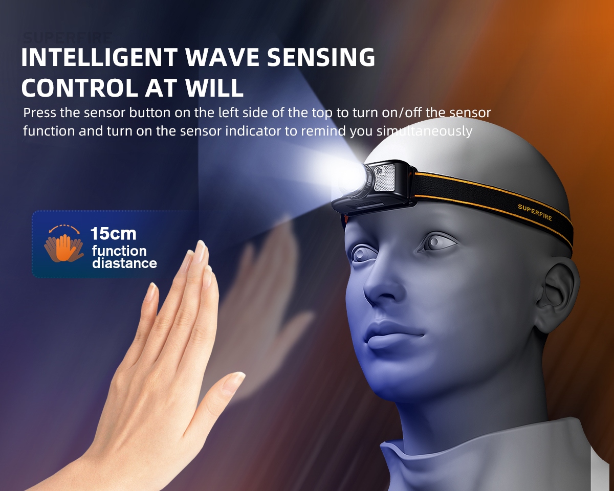 Weighing in at a mere 71g, this compact and portable headlamp is designed for those who seek lightweight illumination without compromise.Experience a new level of convenience with the fixed focus sensor headlight. No more cumbersome adjustments—just wear it on your head, and let the intelligent sensor do the work. The compact design ensures a feather-light feel, making it your ideal companion for nighttime excursions.Charging has never been clearer. The Type-C charging port ensures a swift 1-hour replenishment, and with the built-in 18650 battery boasting an 800mAh capacity, you get a reliable 3 hours of battery life. The intelligent design extends to the multilevel dimming, offering 7 modes for various scenarios.With 200 lumens of brightness, the HL91-X excels in a variety of settings. The white main light illuminates your path, while the red light and strobe function provide visibility without disturbing your night vision. Easily switch between modes with a simple click, ensuring you're always prepared.Take control with the wave of your hand. The intelligent wave sensing feature, activated with the sensor button, allows you to turn the headlamp on/off and provides a clear indicator of the sensor's status. At a distance of 15cm, the sensor responds promptly, giving you hands-free control.Wear it with comfort and confidence. The adjustable headlamp belt, made of high elastic webbing, ensures a secure and snug fit. The headlamp is not only detachable for easy cleaning but also equipped to face the elements with daily waterproofing—be prepared for windy and rainy days.