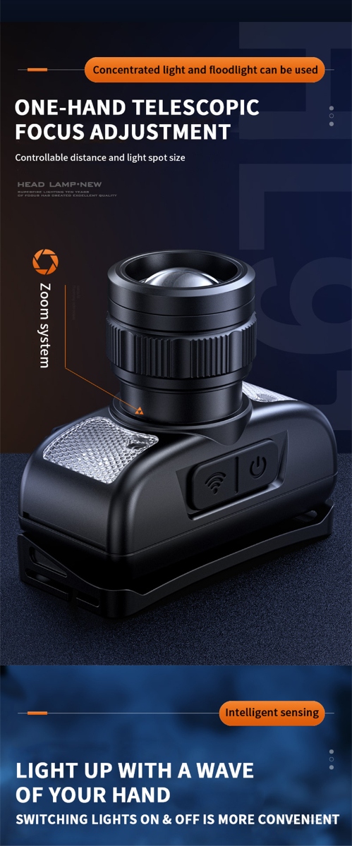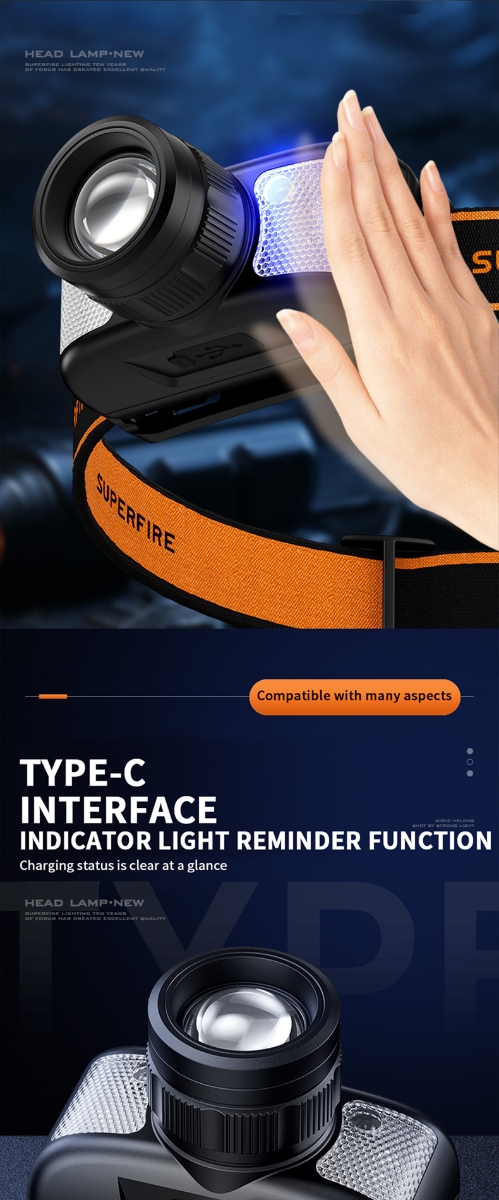 The SUPERFIRE HL91 Zoom Sensor Headlamp is a versatile lighting solution designed for outdoor enthusiasts. Weighing just 92g, it offers a lightweight and comfortable wearing experience, making it perfect for extended outdoor activities. Equipped with motion sensor functionality and XK LAMP BEADS, it provides excellent illumination for various scenes, including a 180-meter long shot capability. With its telescopic focus and multi-level dimming controlled by sensors, users can adjust the light intensity to suit their needs. The headlamp features a dual light source, offering both red and white light options for different situations. Its intelligent sensing technology enables convenient one-hand operation, allowing users to switch lights on and off with a simple wave of their hand. The built-in 1200mAh battery, charged via a Type-C interface, ensures a long-lasting battery life of up to 4 hours, while the IP43 waterproof rating makes it suitable for use in humid environments. In addition to its functional design, the headlamp also incorporates practical features such as a charging indicator light for clear charging status, and a detachable light strip for added convenience. Whether hiking, camping, or working outdoors, the SUPERFIRE HL91 Zoom Sensor Headlamp provides reliable illumination and hands-free convenience, enhancing the outdoor experience for users.