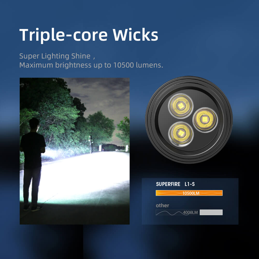 9.Triple-core Wicks,Super Lighting Shine:Maximum brightness up to 10500 lumens