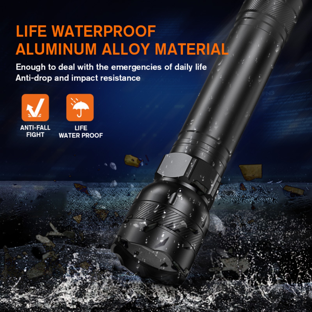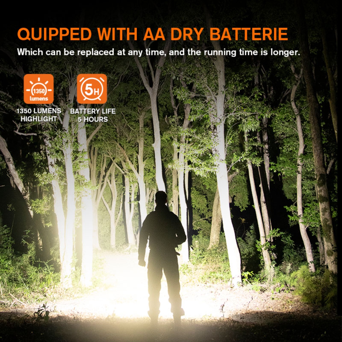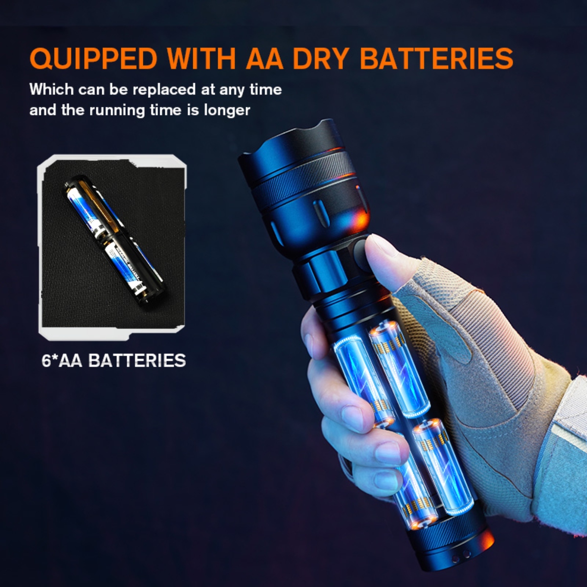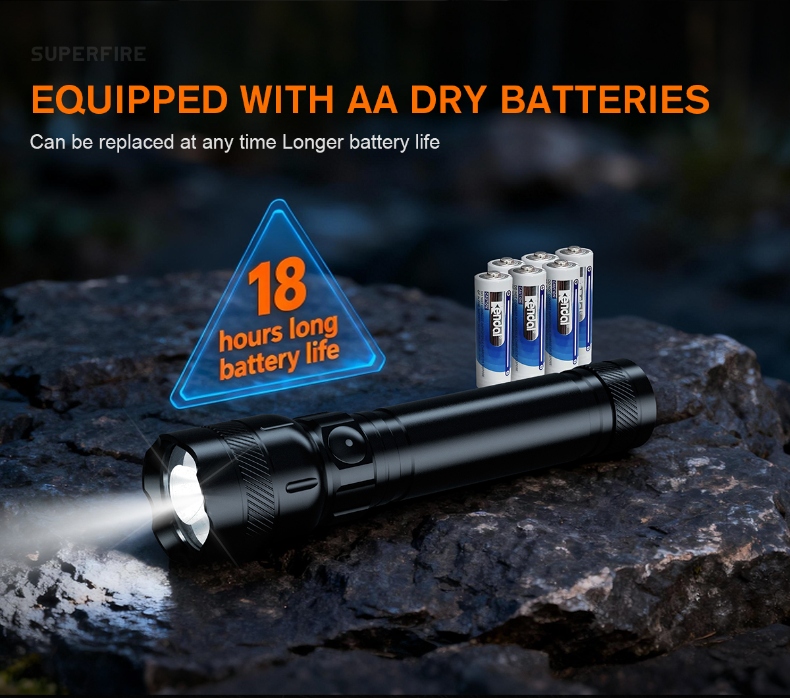 Experience fearlessness in the dark with the SUPERFIRE L27 Super Bright Dry Battery Flashlight. Engineered for excellence, this multi-wick highlight flashlight is equipped with 3pcs SH-UO4 lamp beads, delivering an astonishing 1350 lumens of brightness. With a sturdy aluminum alloy build, it's a reliable companion for any adventure or emergency.Powered by 6*AA dry batteries, the L27 offers a runtime of about 4.7 hours, providing a reliable source of light when you need it the most. The convenience of easily replaceable batteries ensures uninterrupted functionality, making it a practical choice for extended use.Crafted with Seiko quality, the L27 is designed to withstand the rigors of daily life. The aluminum alloy material not only provides anti-drop and impact resistance but also ensures life waterproof capabilities, making it a dependable tool for various emergencies.