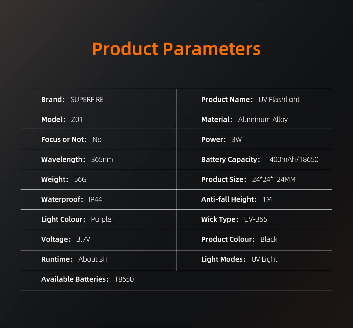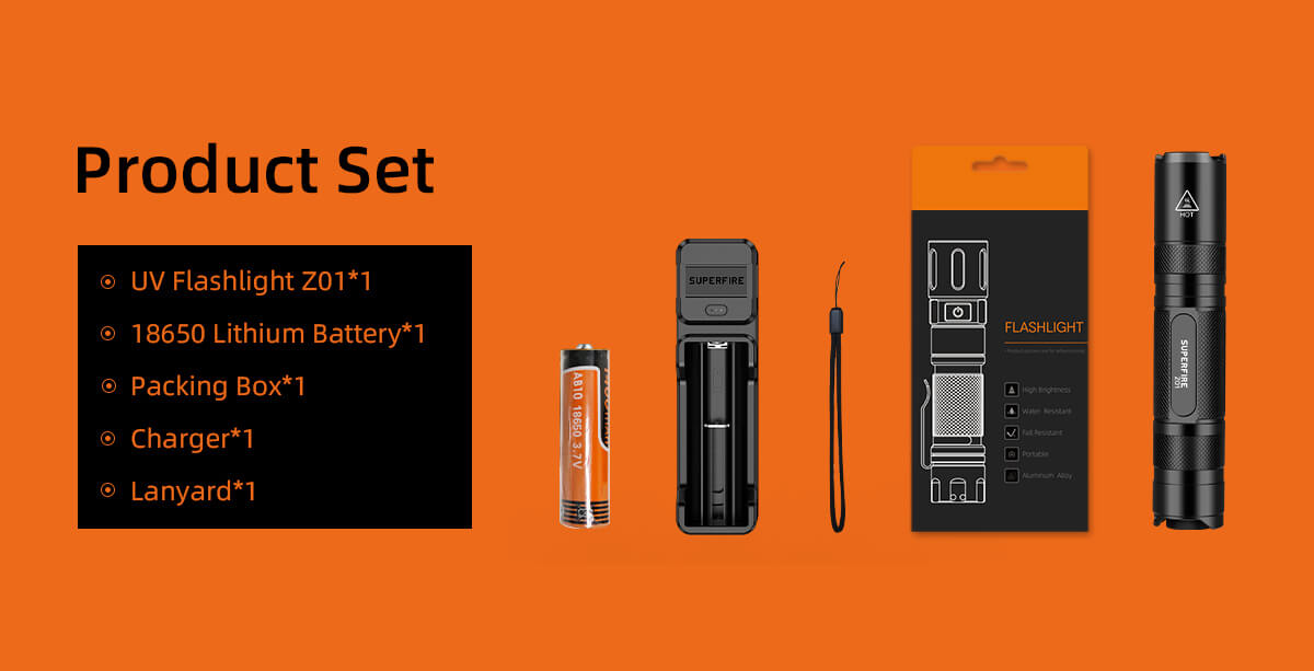 Home  > Products  > Professional Lights  > UV Flashlight  > SUPERFIRE Z01 365nm rechargeable UV torch