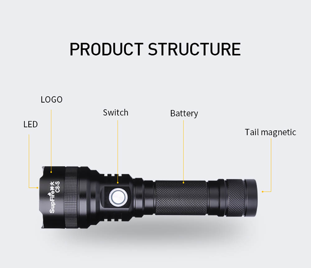 Home  > Products  > Flashlights  > Tactical Flashlight  > SUPERFIRE C8-S Tactical Flashlight