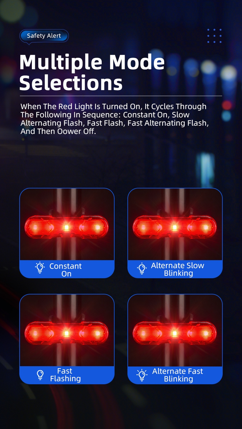 | Switch Gears | Strong→Weak→Slow Flash→Strobe | Constant→Alternate Slow Flash→Fast Flash→Alternate Fast Flash |