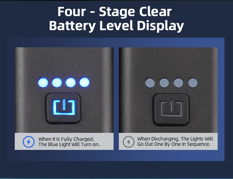 Charging Indicator: Progressive increase (25%-50%-75%-100%)