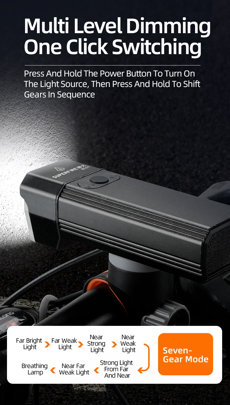 Cycling Vision All In Sight.One-Touch To Light Up As Bright As Day.Optical Design Suitable For Urban Areas Without Shaking The Eyes.