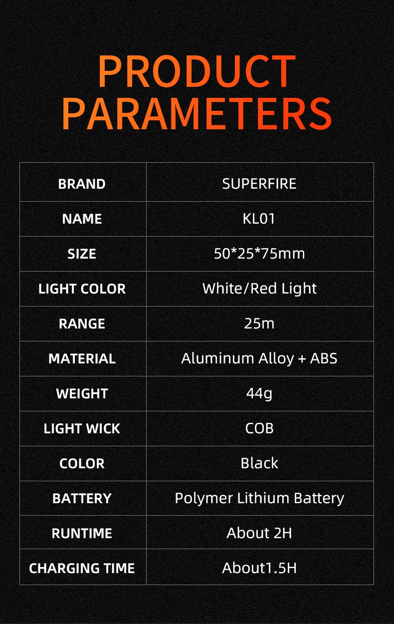 The KL01 Work Light is a versatile and compact lighting solution designed for various work environments and outdoor activities. Featuring a 6W COB LED, this lightweight light offers impressive illumination with up to 460 lumens. With its rechargeable 650mAh battery, multiple lighting modes, and convenient mounting options, the KL01 combines functionality and portability in a durable, water-resistant package.