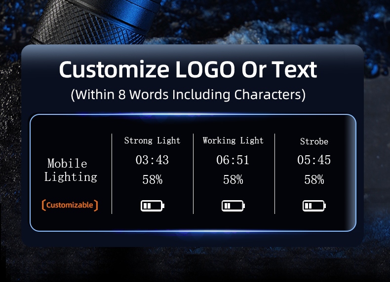 | Power Source | 1*18500 rechargeable Li-ion battery(1900 mAh) |