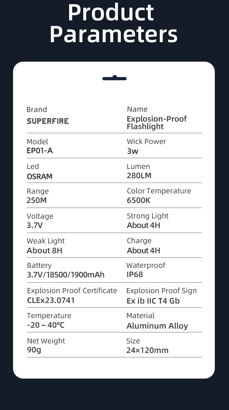 | EP01 Mini explosion-proof Flashlight Data Sheet | |