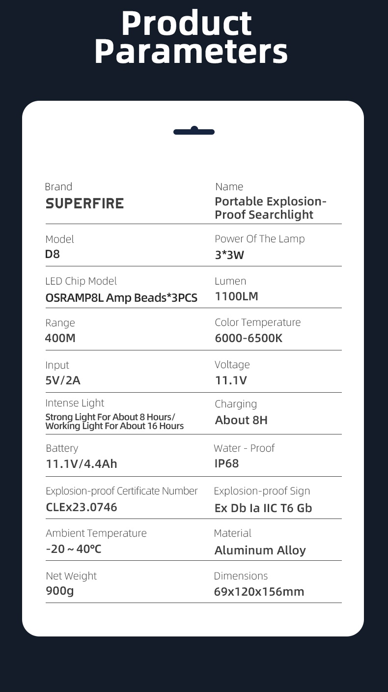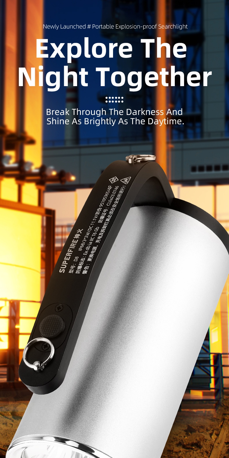 Designed for ergonomic comfort—features a detachable shoulder strap for hands-free carrying and a non-slip handle for a smooth grip, all while keeping the lightweight body easy to maneuver. With IP68 waterproof rating, it withstands heavy rain, splashes, and damp conditions. Certified Ex ib IIB T3 Gb explosion-proof, it guarantees safe operation in hazardous areas like mines, oil fields, and firefighting scenes—making it the ultimate rugged and reliable lighting tool for professionals.
