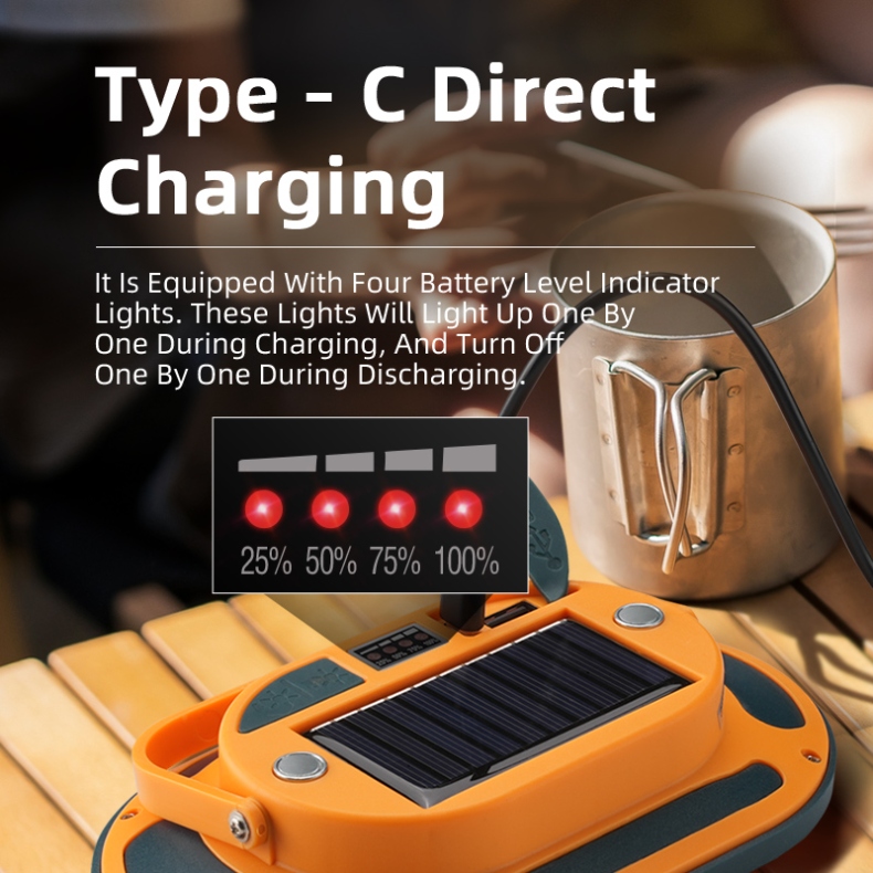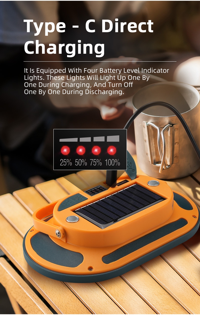 Dual charging options: Built-in solar panel and Type-C port for convenience