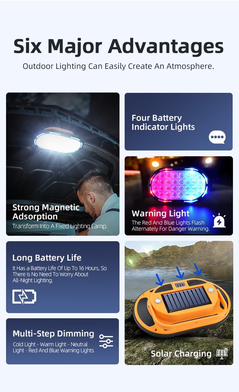 Special Features: Solar charging, Battery level display, Magnetic mount, Hanging option