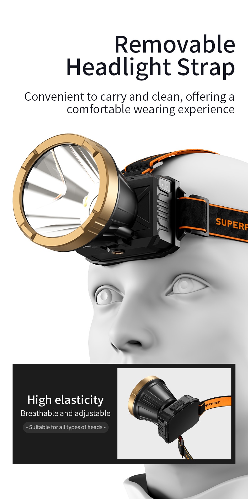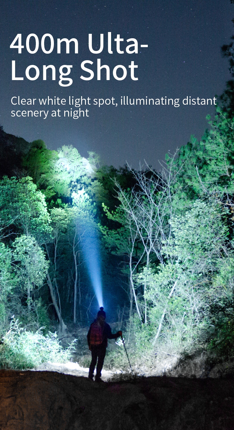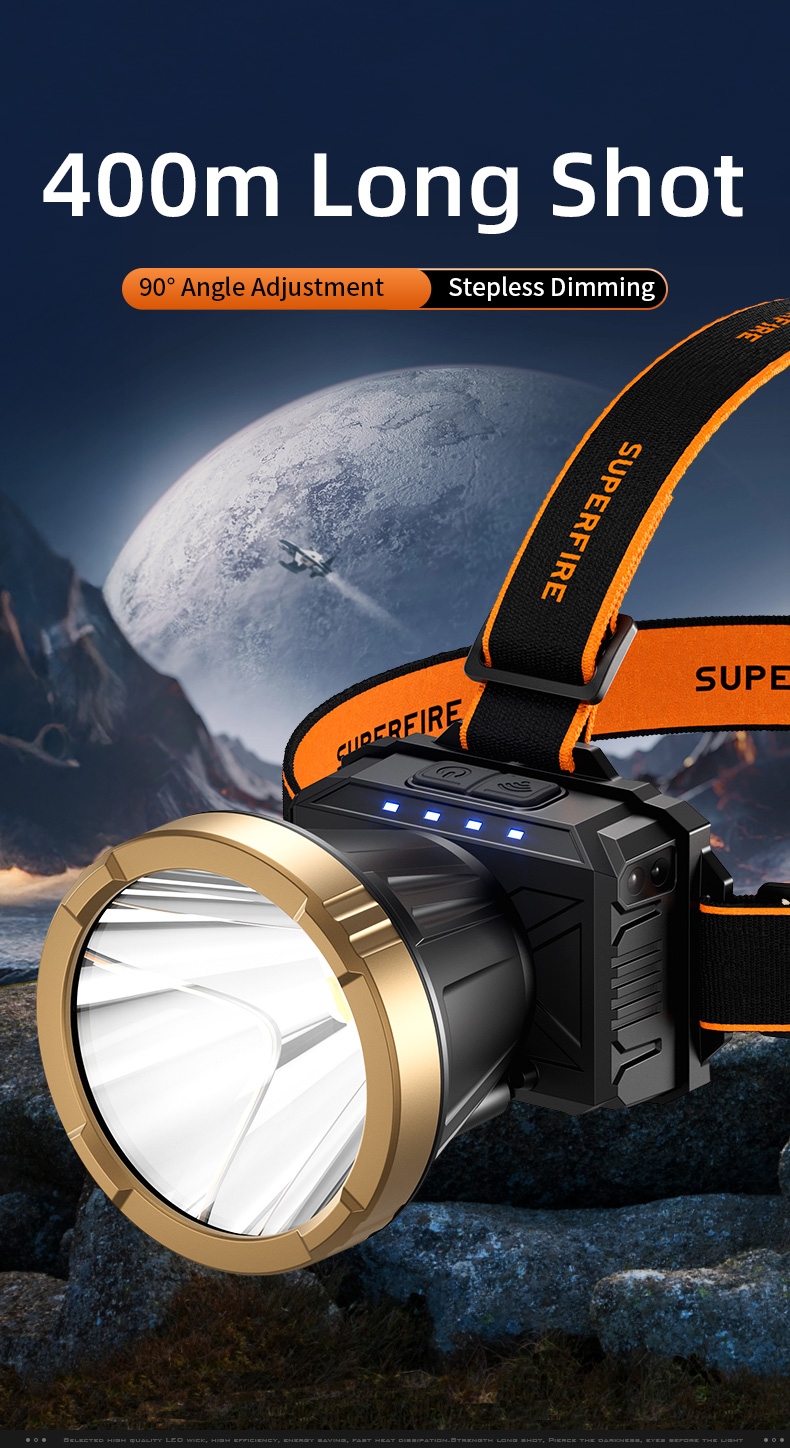 Headlamp with a lighting distance of 1300 feet (400 meters)