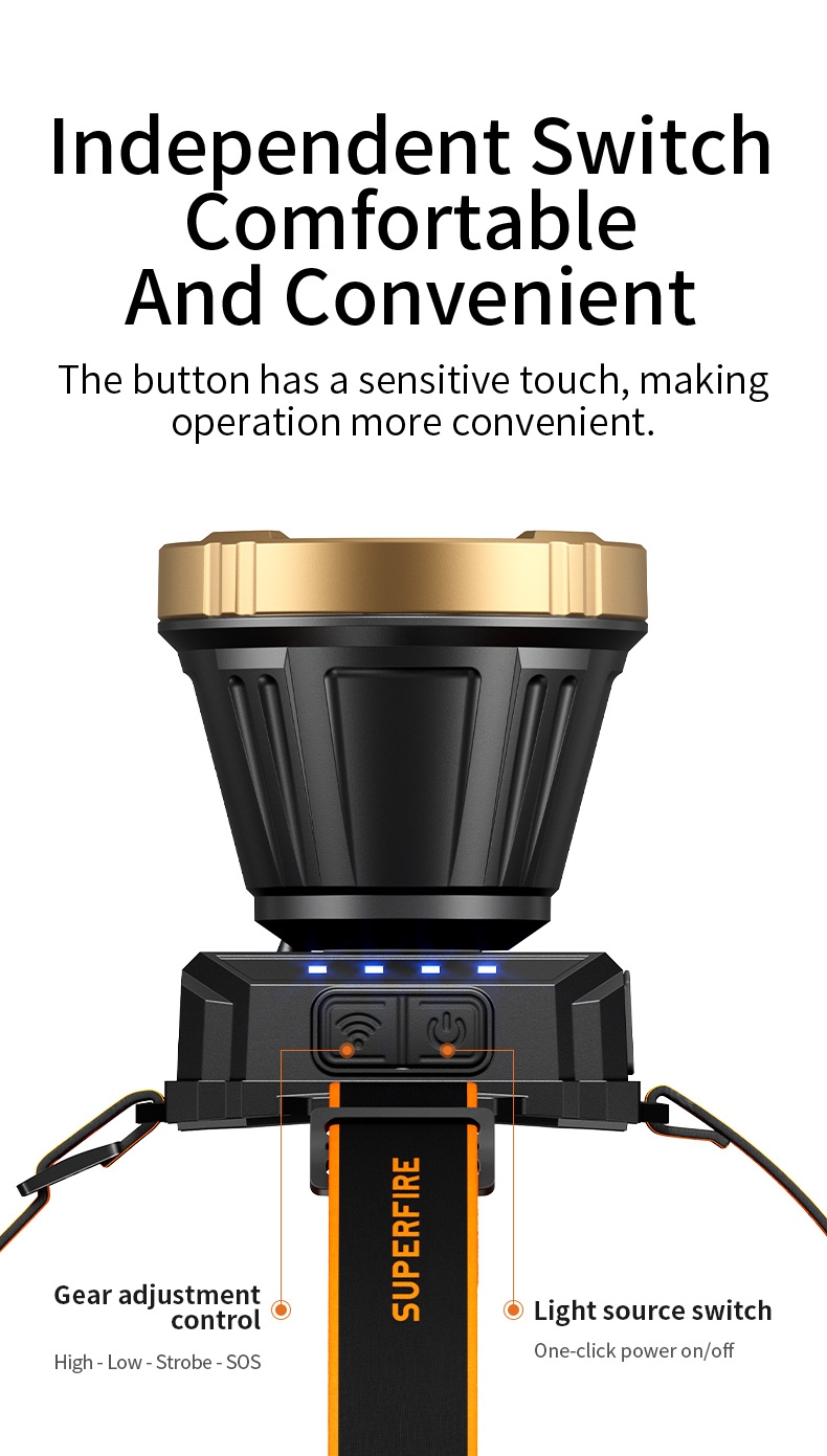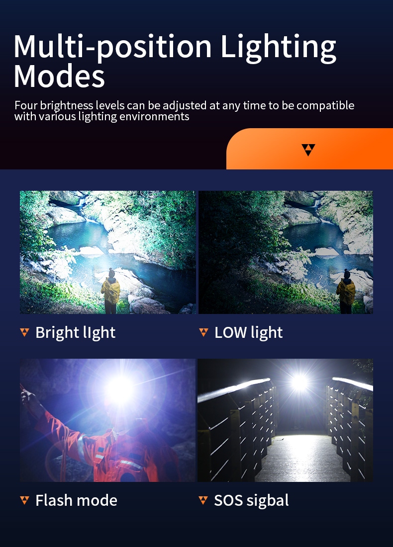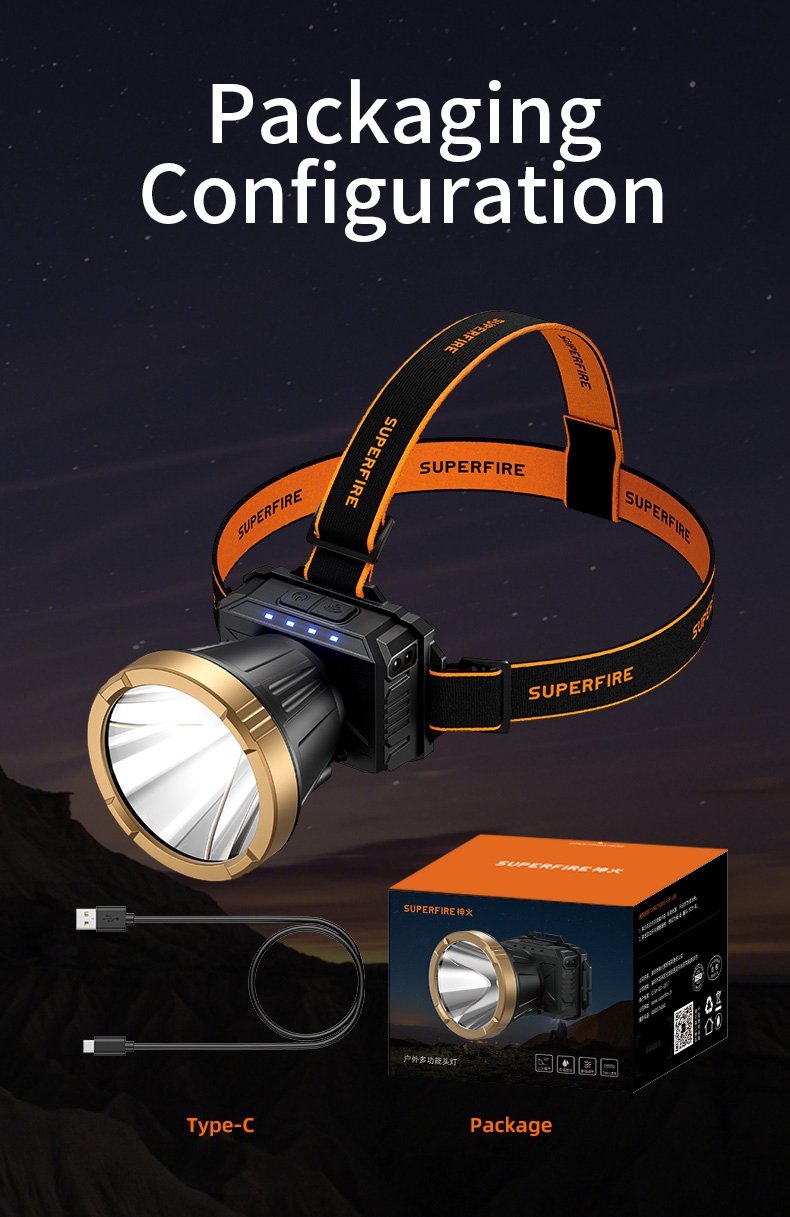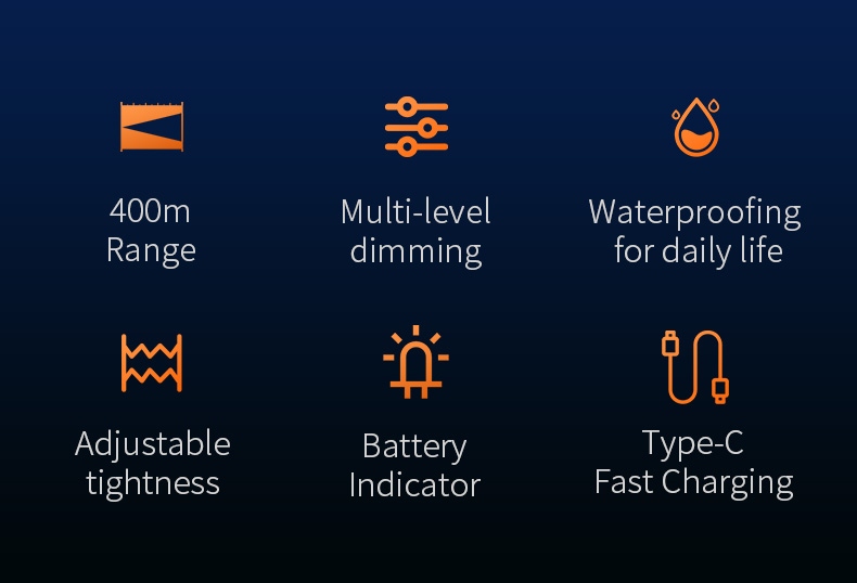 Headlamp with a lighting distance of 1300 feet (400 meters)