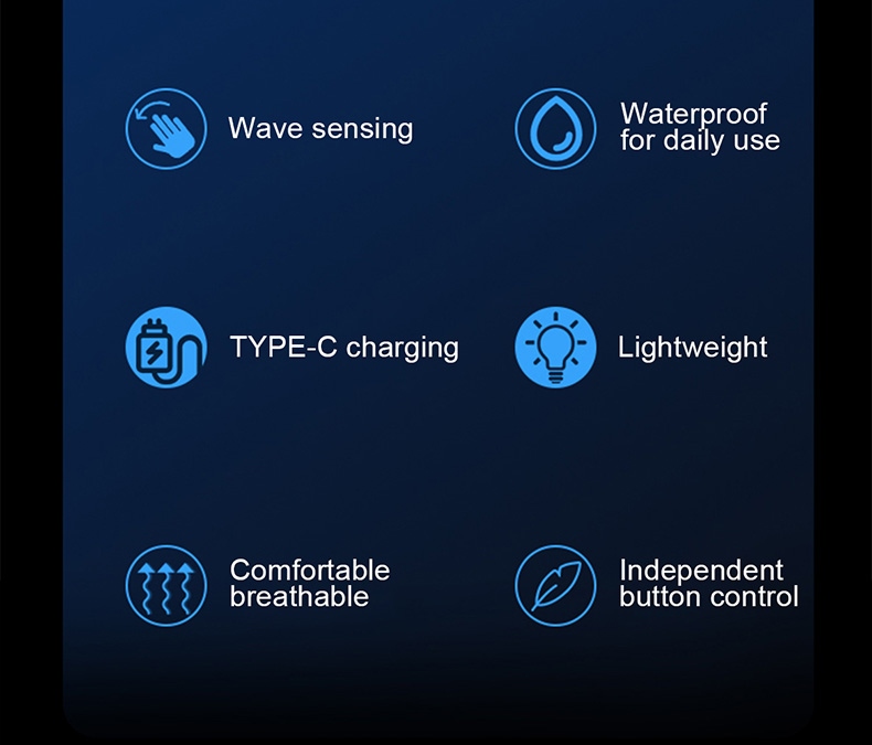 The HE03-A is a multifunctional induction headlight with a 6W power output and 220LM brightness. It comes with features like smart hand-wave sensing at a 10CM golden distance, TYPE-C fast charging using a common interface. It's lightweight, weighing only 44g, and is waterproof for daily life. The headlight has an independent button design for easy operation and 5-speed adjustment to suit different scenarios. It's suitable for users who need lighting for outdoor activities or home use.