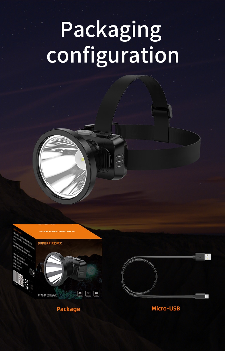 Home  > Products  > Headlamps  > USB Rechargeable Headlamp  > SUPERFIRE HL52-G Rechargeable Headlamp