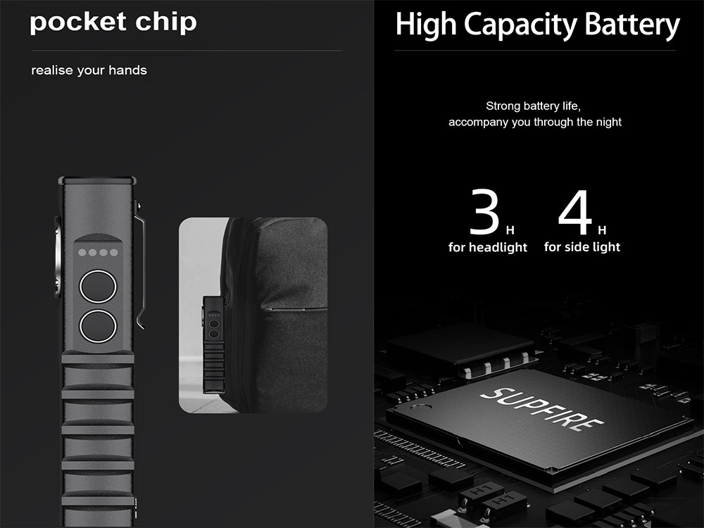 Long Runtime: Up to 3 hours for front light and 4 hours for side light.