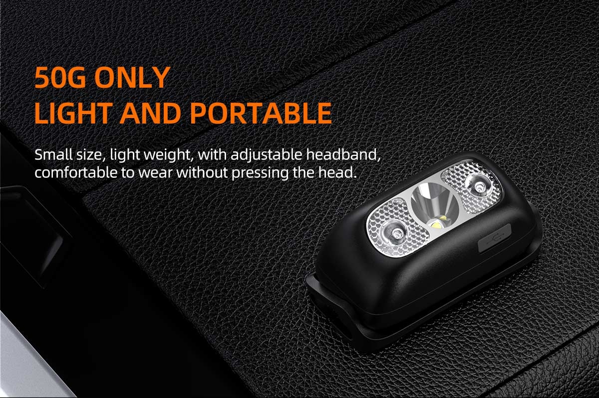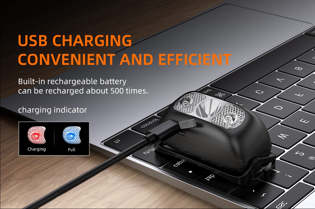 This advanced headlamp is equipped with smart sensors, which allows you to turn the headlight on/off by waving your hand. With small size, light weight, adjustable headband, this ultralight headlamps are favored by minimalists and outdoor enthusiasts. Its ultralight construction ensures comfort during prolonged wear, making it a perfect fit for activities ranging from running and hiking to camping and backpacking. Despite its lightweight design, this motion sensor headlamp delivers impressive brightness that effortlessly pierces through the darkness. You can change the direction of light by pulling the lamp holder. With built-in rechargeable battery, this ultralight can be recharged about 500 times. Whether you're exploring the outdoors, running or riding at night, let this rechargeable LED headlamp be your intuitive guide.