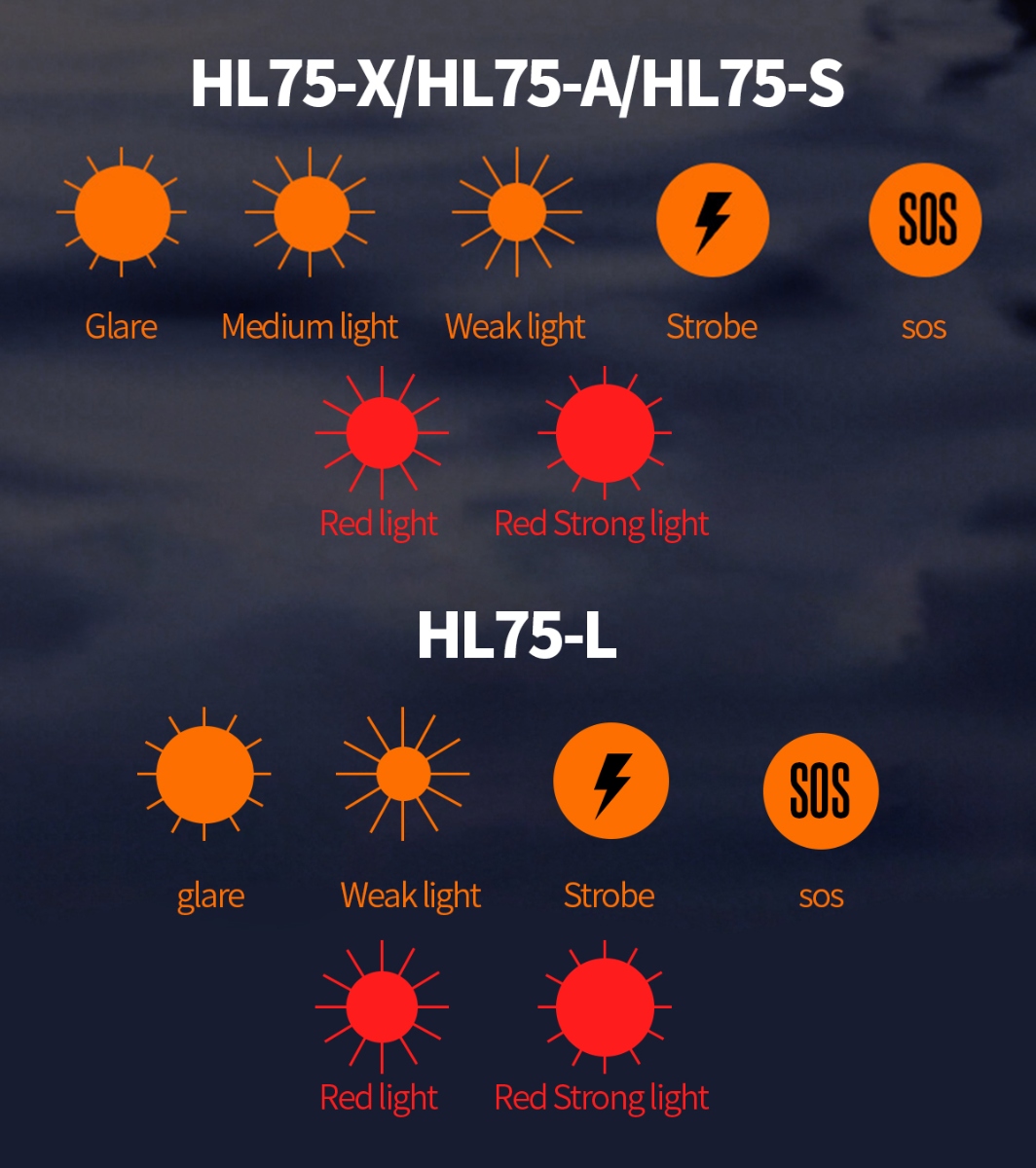 Modes:7modes(Strong Light-Medium Light-Low Light-Strobe-SOS-Off/Red Light-Red Strobe Light)