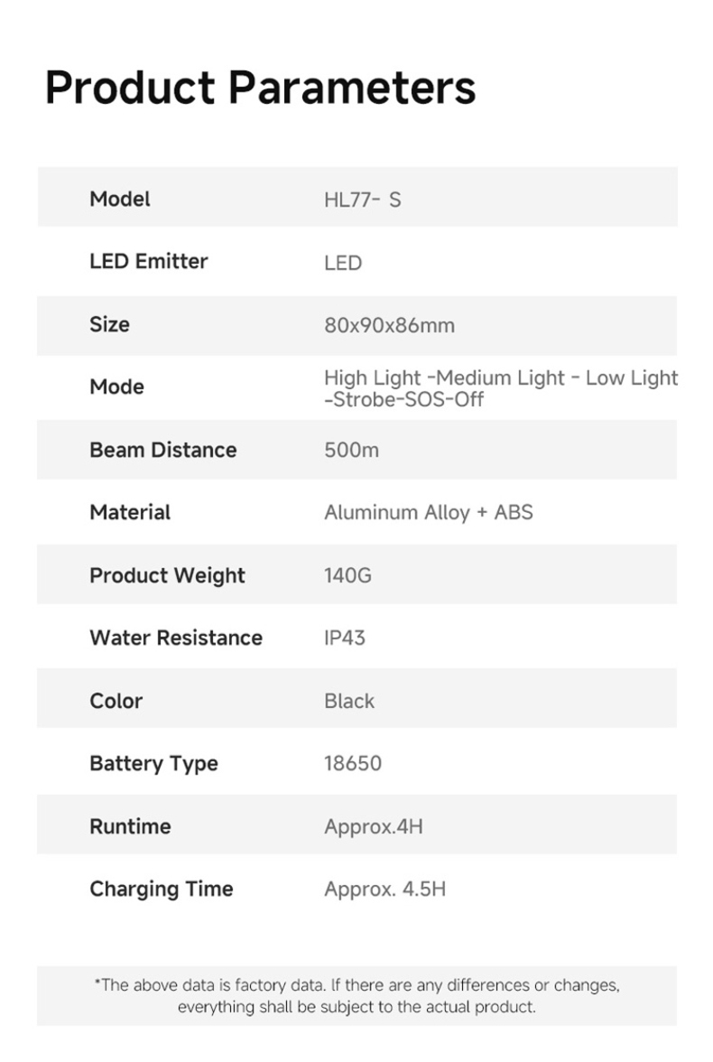 Brightness:500LM/550LM