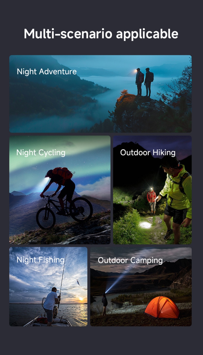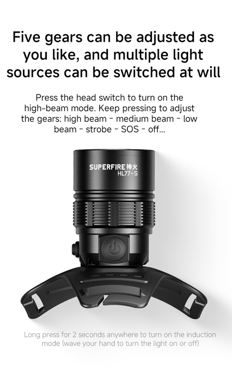 1. Five-speed mode: High, medium, low, strobe, and SOS modes are freely switchable to meet the needs of different scenarios.