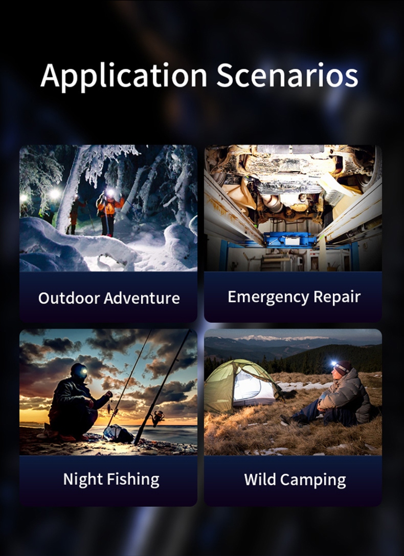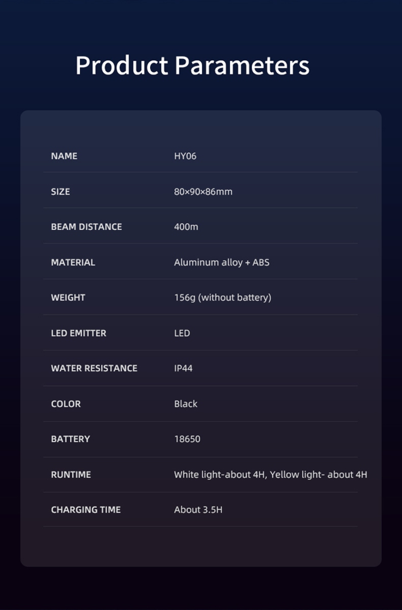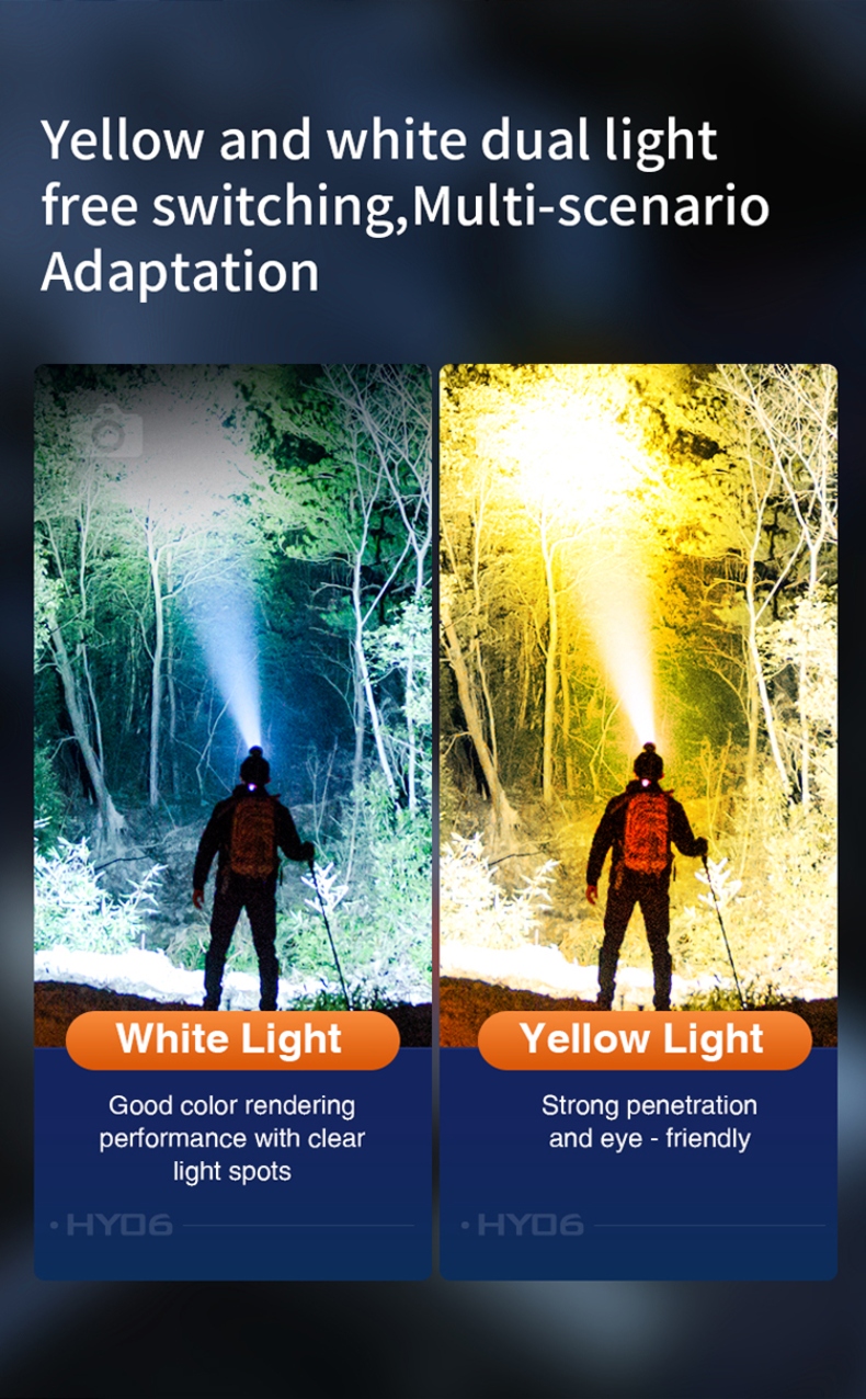 1. Six-speed mode: High-white, low-white, strobe, SOS, high-yellow, and low-yellow modes are freely switchable to meet the needs of different scenarios.