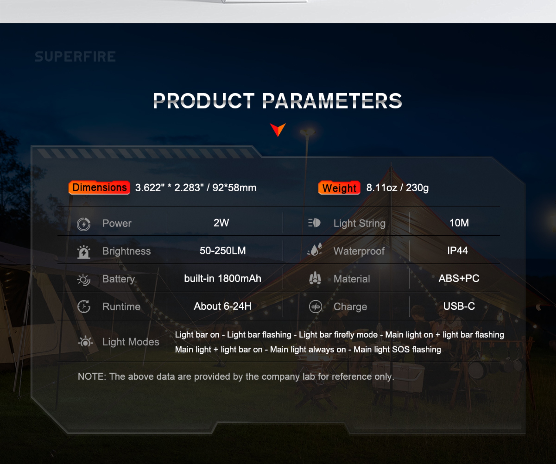 SUPERFIRE LT01 2IN 1 CAMPING STRING LIGHT