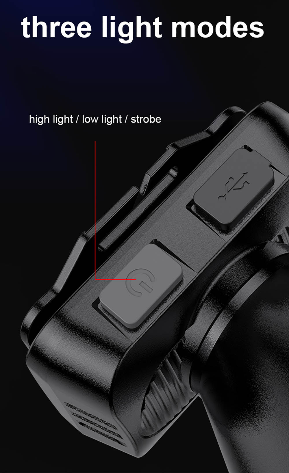 Lighting mode High>Low>Strobe,keep pressing for 2s enter SOS