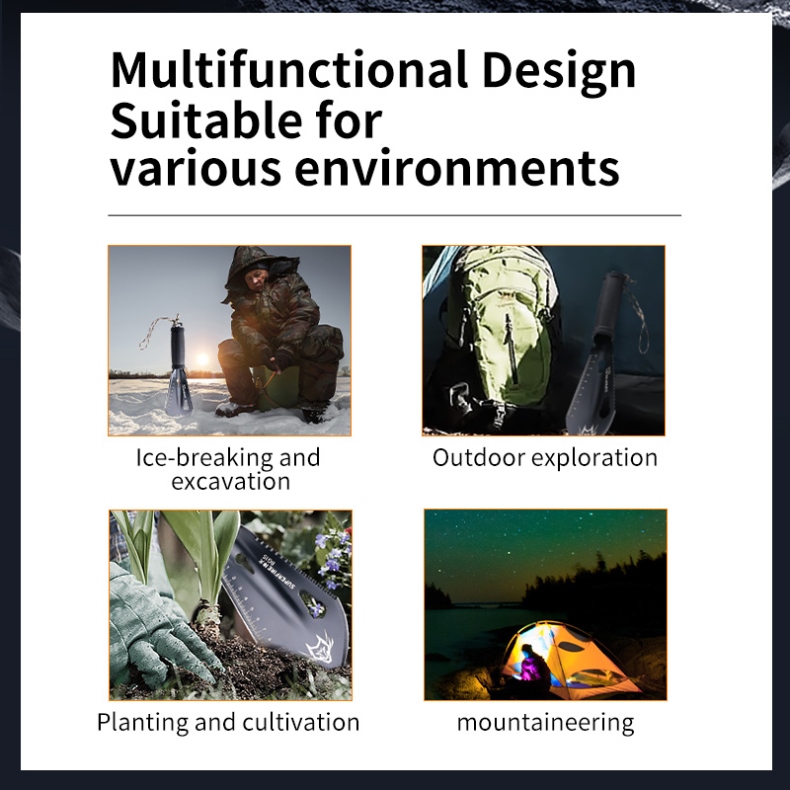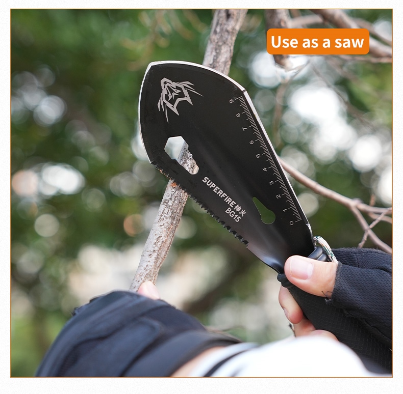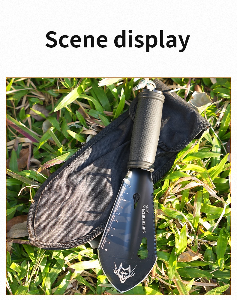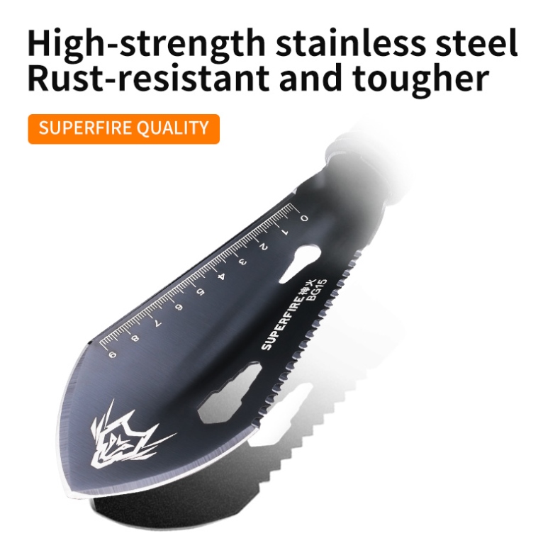 The SUPERFIRE BG15 is a compact and versatile multi-functional folding shovel designed for outdoor enthusiasts, campers, and survival experts. Measuring just 28cm in total length, this tactical tool packs 14 different functions into its compact frame. Crafted from high-quality 3Cr13 martensitic stainless steel with a black-treated blade, the BG15 offers durability and reliability in various outdoor scenarios.