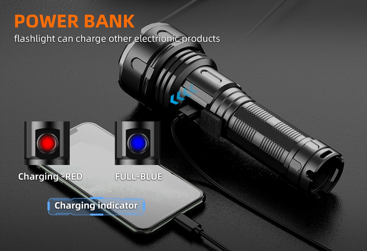 2.Type-c charging & power bank:flashlight can charge other electronic products