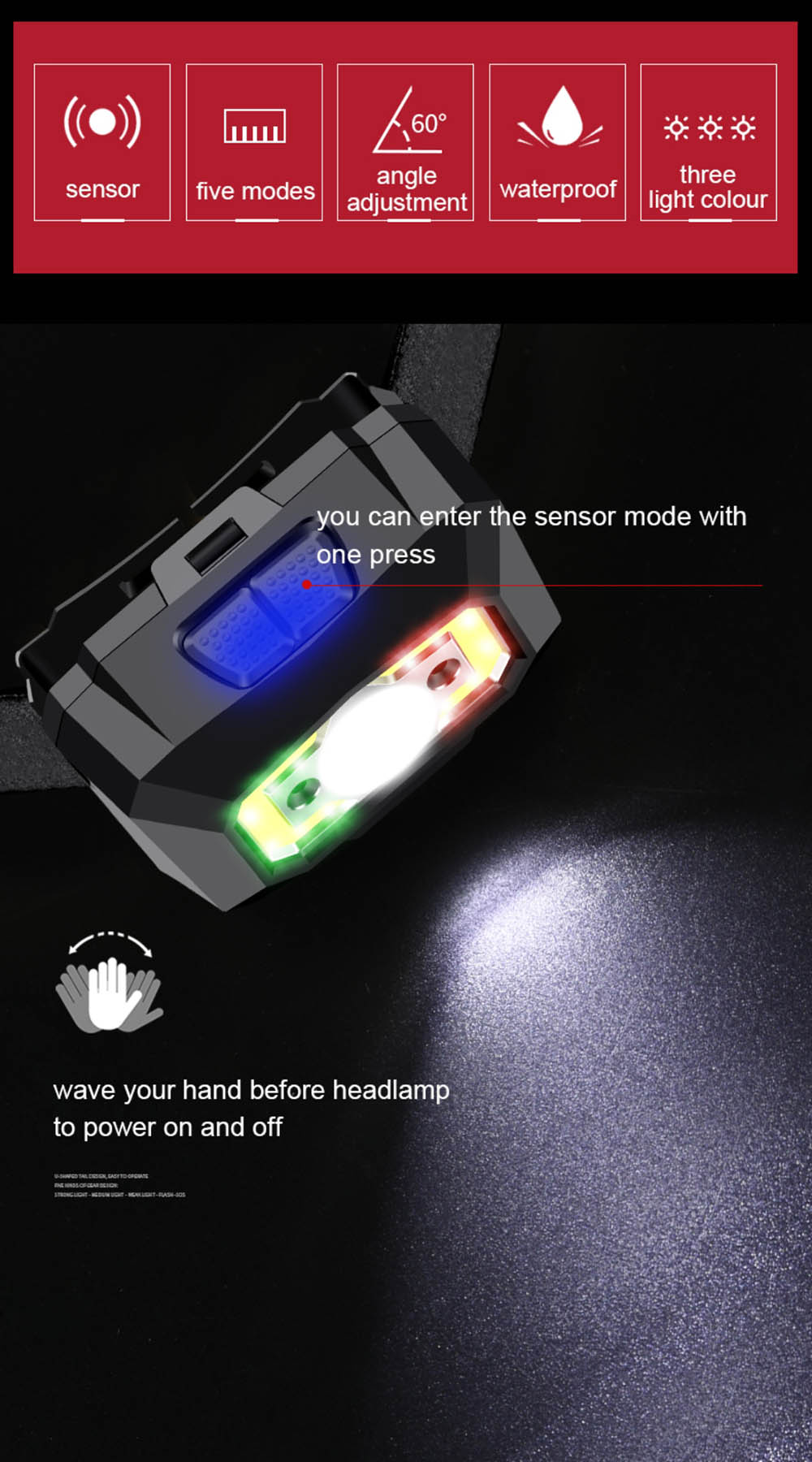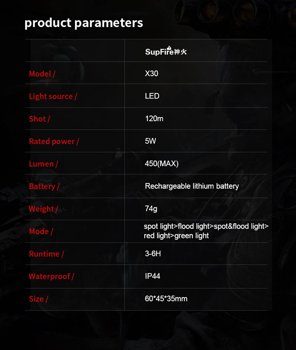 Home  > Products  > Headlamps  > Sensor Headlamp  > SUPERFIRE X30 Red Light Headlamp