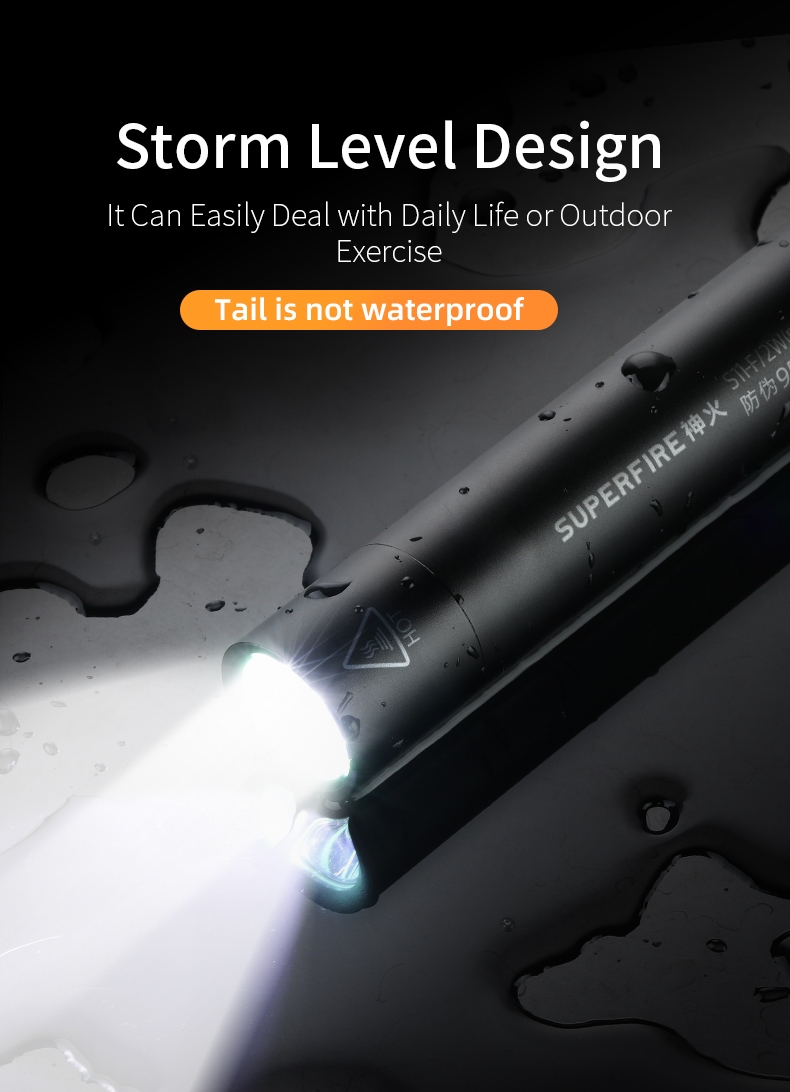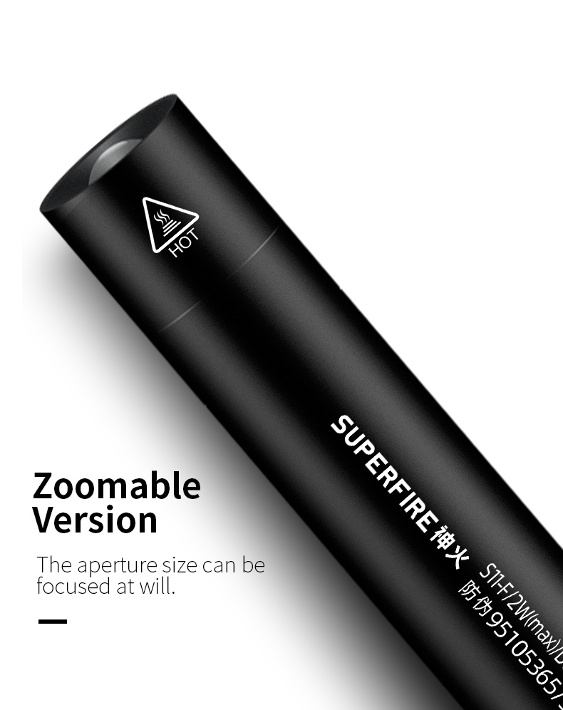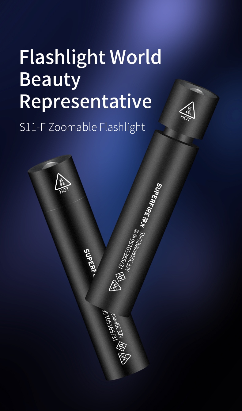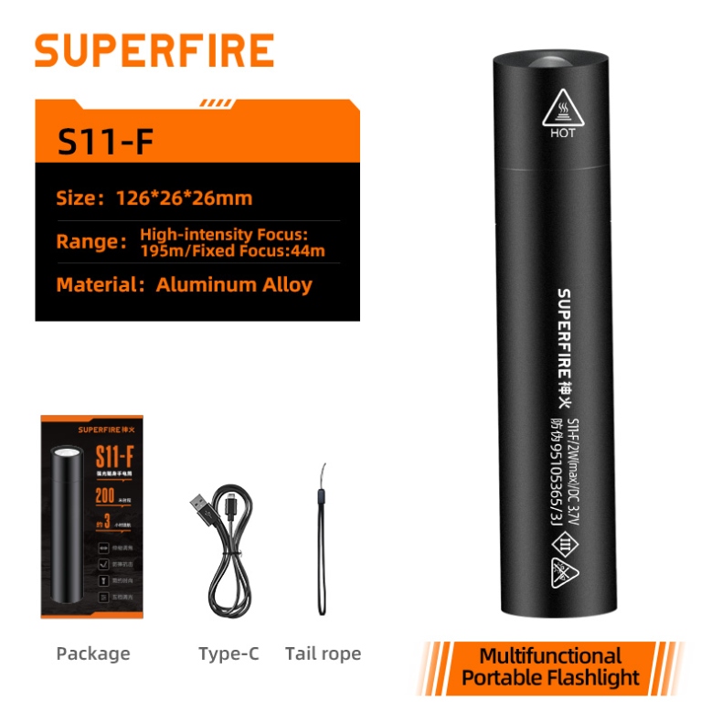 The SUPERFIRE S11-F is a compact, multifunctional LED flashlight engineered for superior performance. Delivering 160 lumens of brightness and a 195-meter beam distance, it combines powerful illumination with adjustable focus capabilities. Designed with an aluminum alloy body and intuitive controls, it adapts seamlessly to outdoor exploration, emergencies, or everyday tasks.