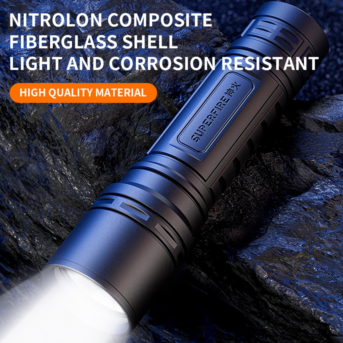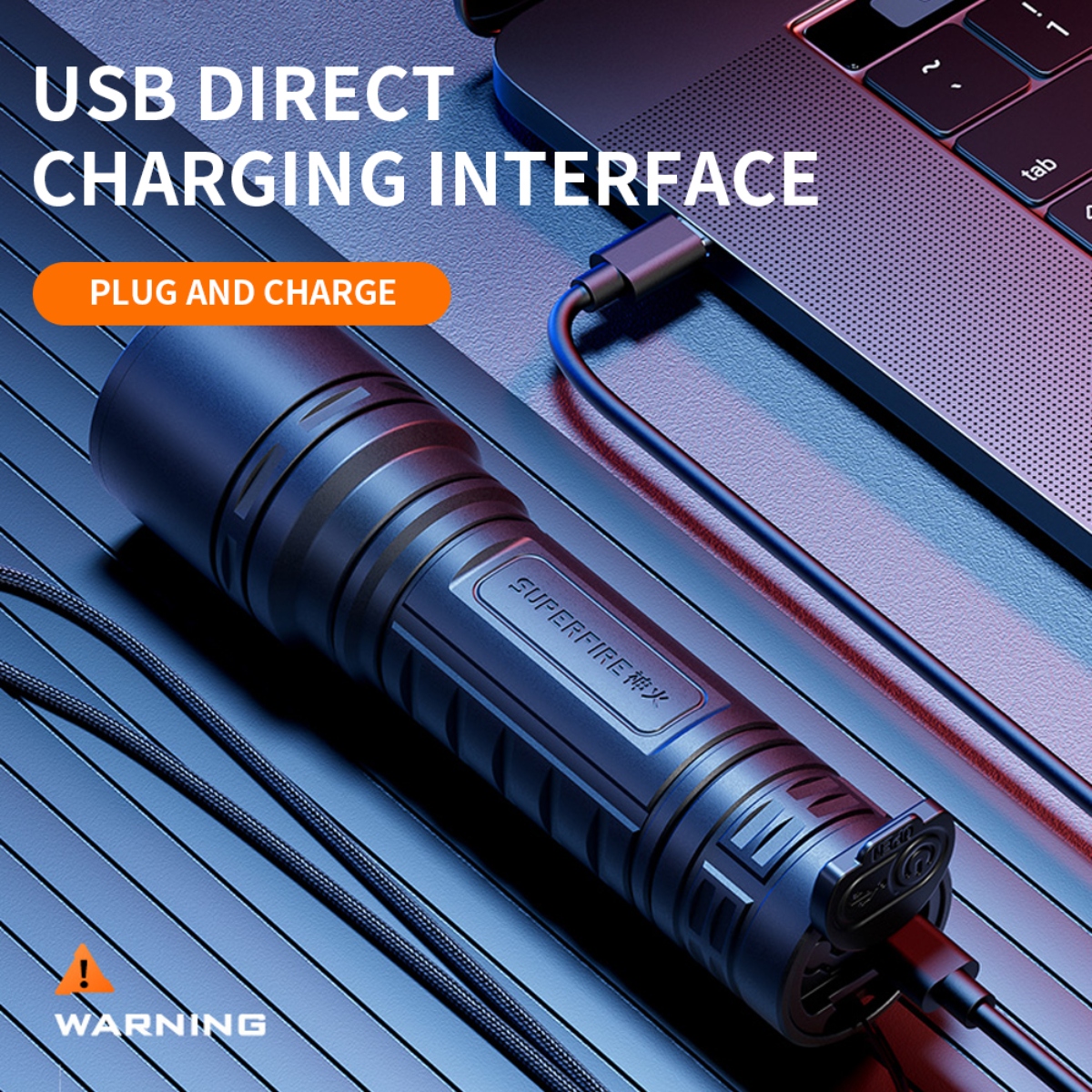 SUPERFIRE S33-X portable led Flashlight is a compact and versatile lighting tool that fits seamlessly into your daily life. Weighing only 82 grams, this mini flashlight fits easily into a pocket, backpack or hangs on a keychain,USB charging, equipped with 18650 rechargeable lithium battery, original aesthetic design,comfortable grip.Made of high quality materials. Waterproof IP43 ,not afraid of rain. This flashligt is Perfect for outdoor activities and daily use.