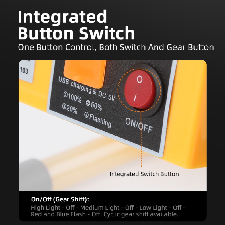 3. Multiple Lighting Modes: Strong, medium, weak, and red-blue flashing for various needs.