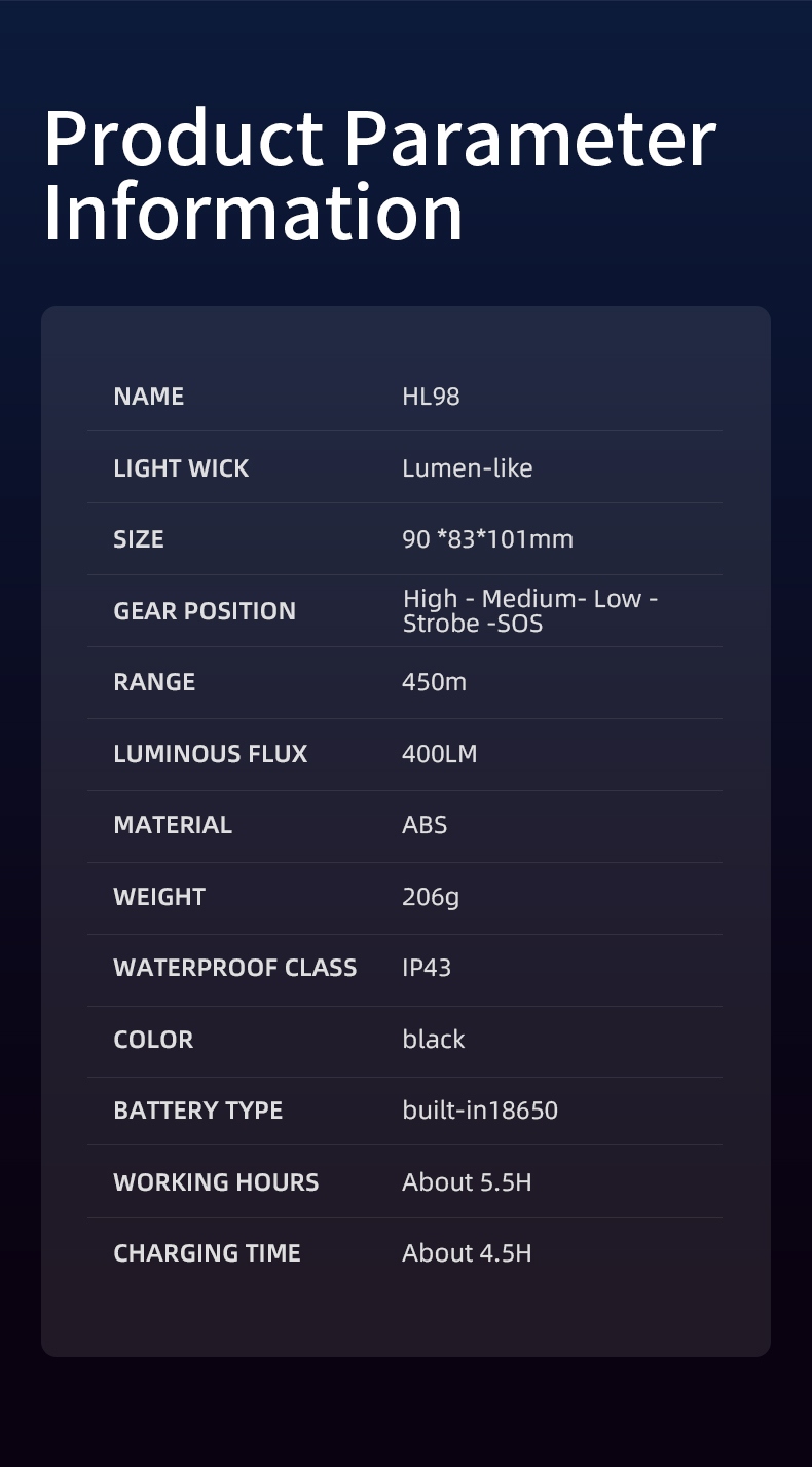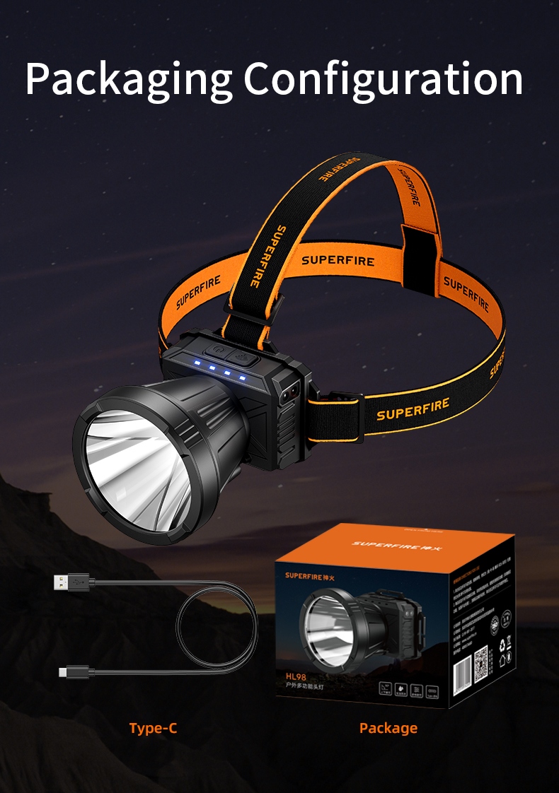The SUPERFIRE HL98 is a practical motion sensor headlamp designed for hands-free convenience in various scenarios—from camping and hiking to construction and emergency use. Equipped with a 400-lumen LED, it delivers a 450-meter beam distance for long-range visibility. The durable ABS shell and IP43 water resistance ensure reliability in harsh conditions, while the adjustable headband and 90° angle adjustment provide a comfortable, customizable fit. With 5.5 hours of runtime and fast Type-C charging, it’s a reliable companion for all-day use.