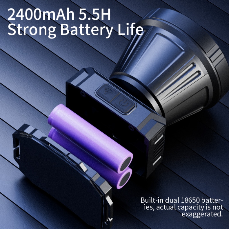 2. 5+1 Lighting Modes: Cycle through Strong → Medium → Weak → Strobe → SOS with a single click; long-press to turn off.