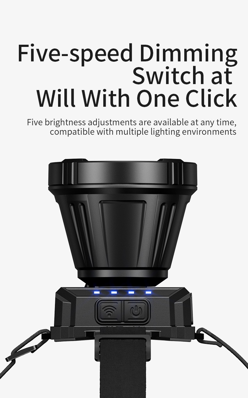 2. 5 Lighting Modes: Cycle through Strong → Medium → Weak → Strobe → SOS to meet different lighting needs (e.g., outdoor exploration, emergency signaling).