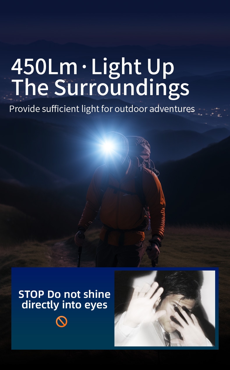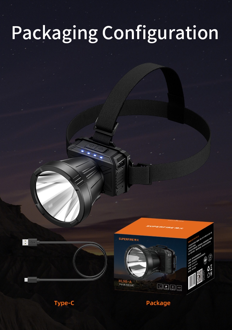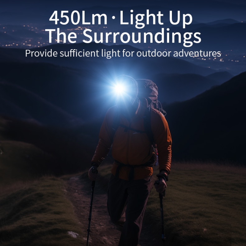 The SUPERFIRE HL98-A is a versatile motion sensor headlamp designed for hands-free convenience in diverse scenarios—from camping and hiking to construction and emergency use. Equipped with a 450-lumen LED, it delivers a 530-meter beam distance for long-range visibility. The durable ABS (shell) and IP43 water resistance ensure reliability in harsh conditions, while the adjustable headband and 90° angle adjustment provide a comfortable, customizable fit. With 5.5 hours of runtime and fast Type-C charging, it’s a reliable companion for all-day use.