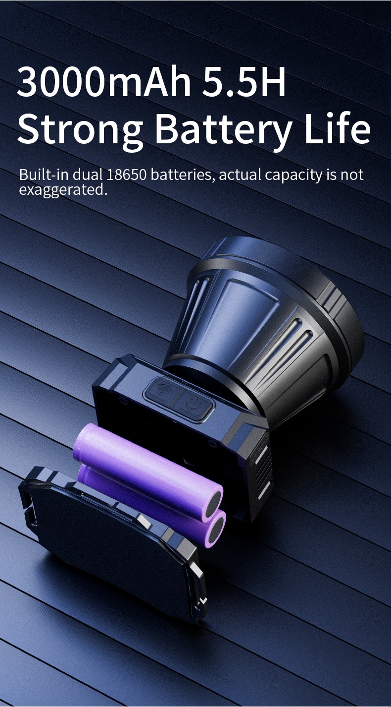 3. Long Runtime: Up to 5.5 hours of continuous use with built-in 2×18650 1500mAh lithium batteries.