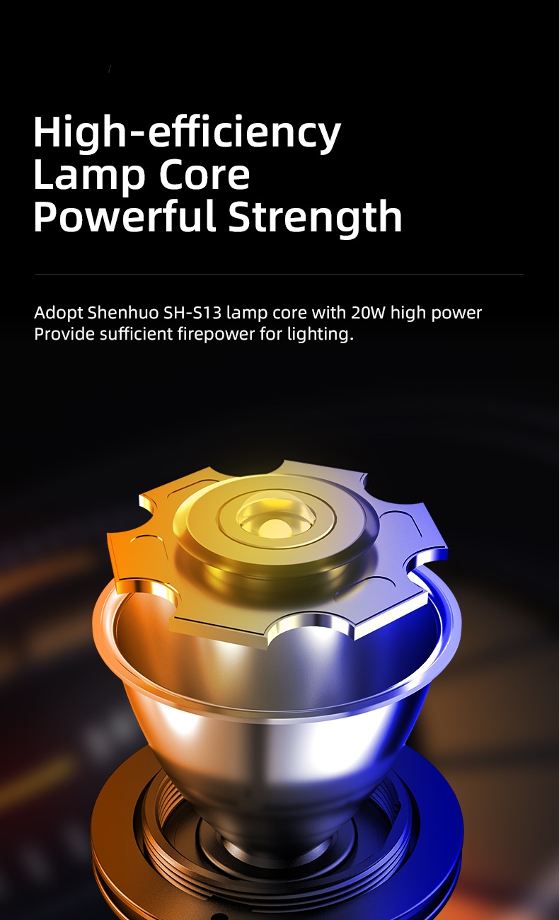 · Ultra-Bright Performance: 20W SH-S13 LED emits 1480 lumens (8219K white light) with a 330m reach.