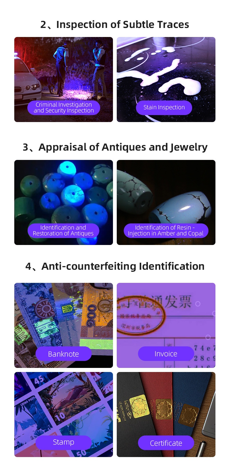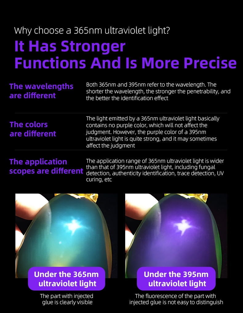 · True 365nm Wavelength: Authentic UV spectrum for accurate fluorescence detection