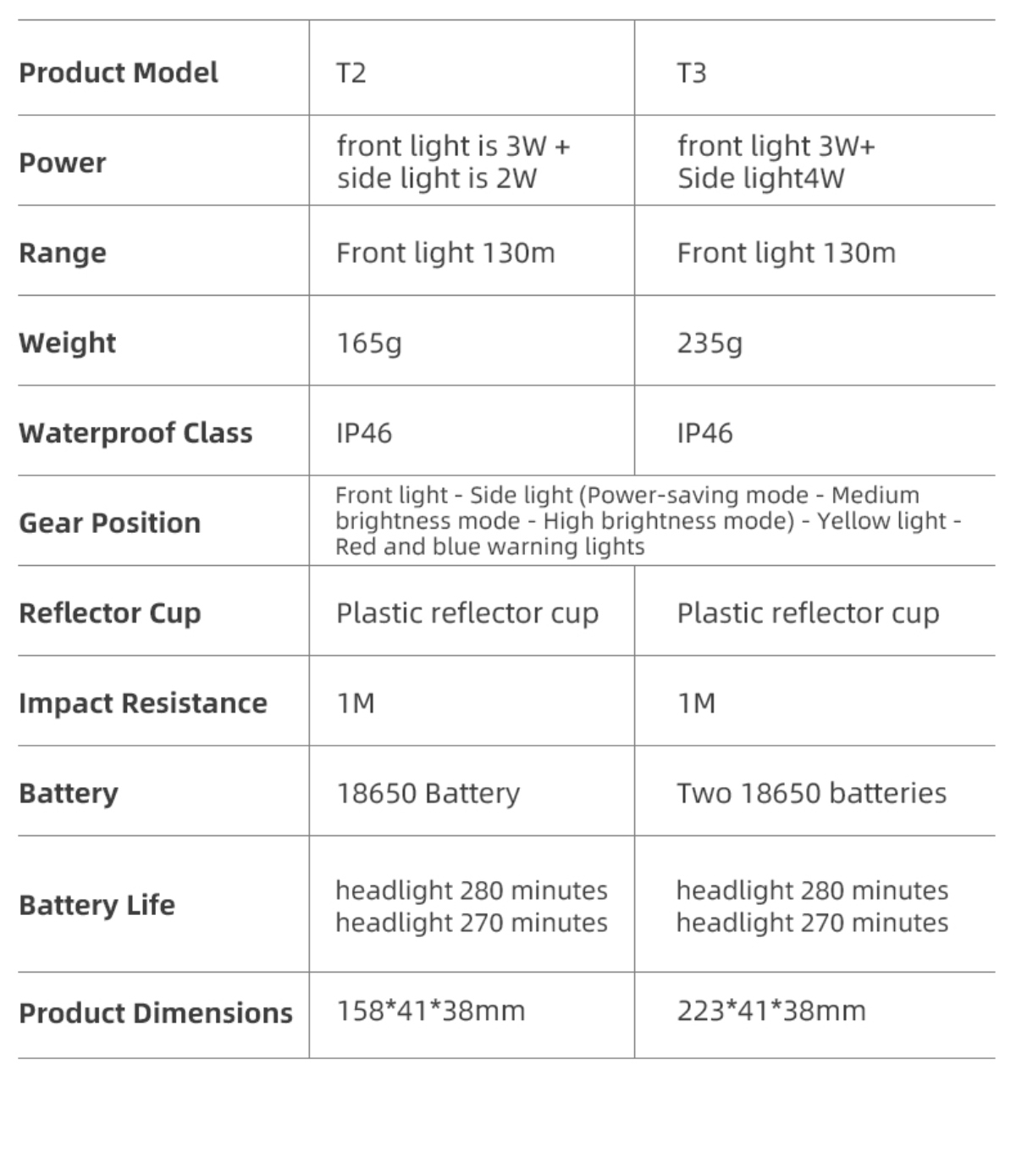| Material | PC lens, Aluminum alloy body |