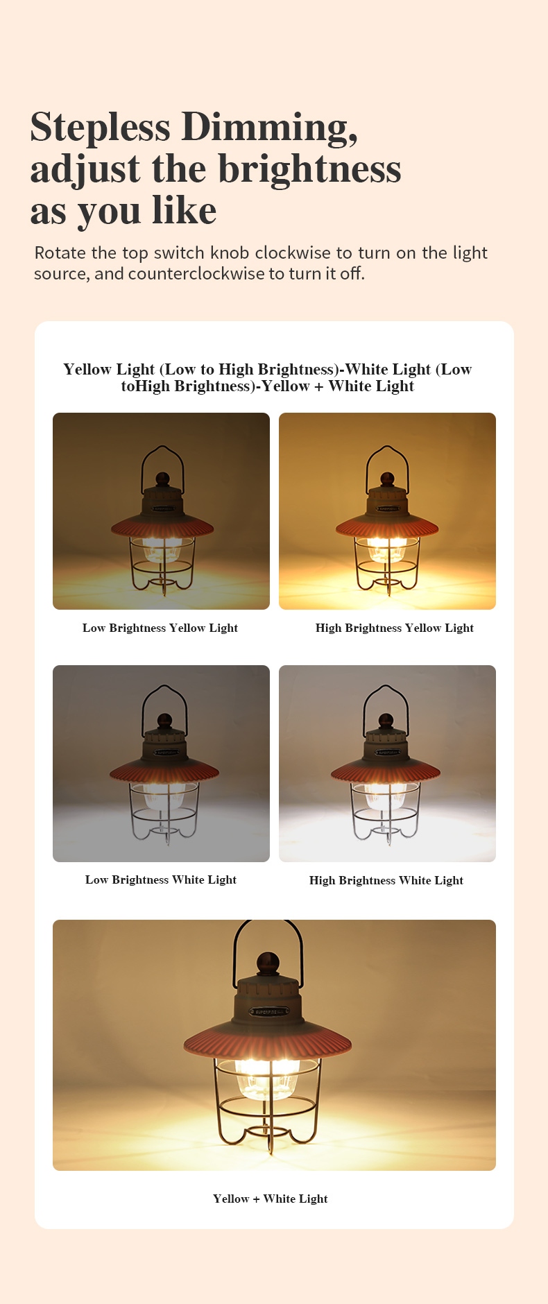 3-color lighting modes (white, yellow, mixed) to suit different needs