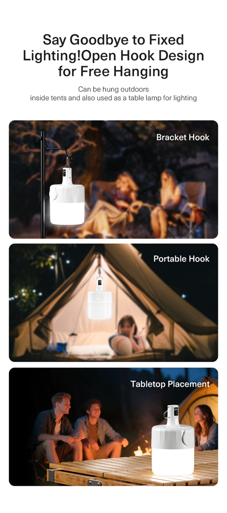 4. The lamp head has a handle/hanging tab for easy carrying and hanging.