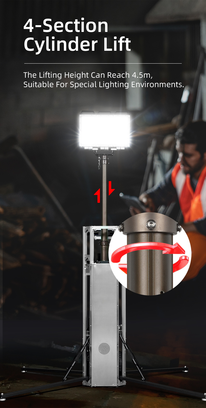 4-Section Cylinder Lift, The Lifting Height Can Reach 4.5m, Suitable For Special Lighting Environments.