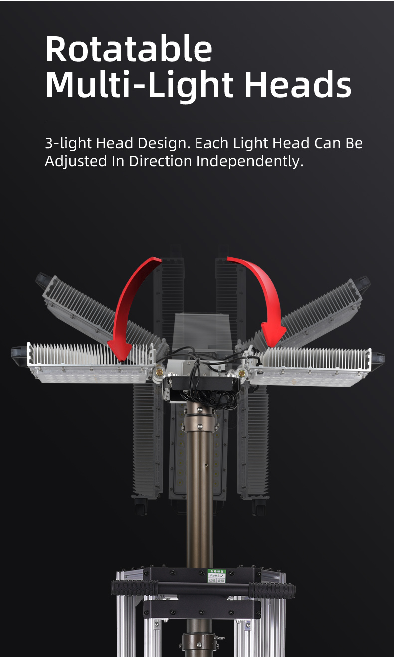 Rotatable Multi-Light Heads, 3-light Head Design. Each Light Head Can Be Adjusted In Direction Independently.