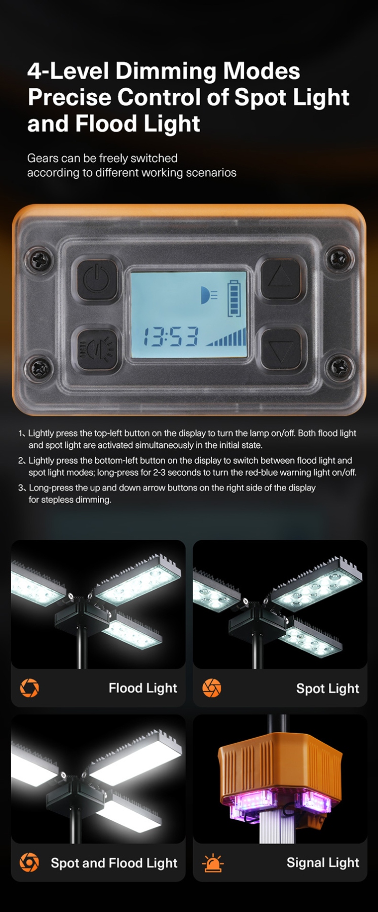 Visible Range up to 1 Kilometer: The lighting system provides a visible range of up to 1 km, making it suitable for large-scale outdoor activities or emergency response scenarios.